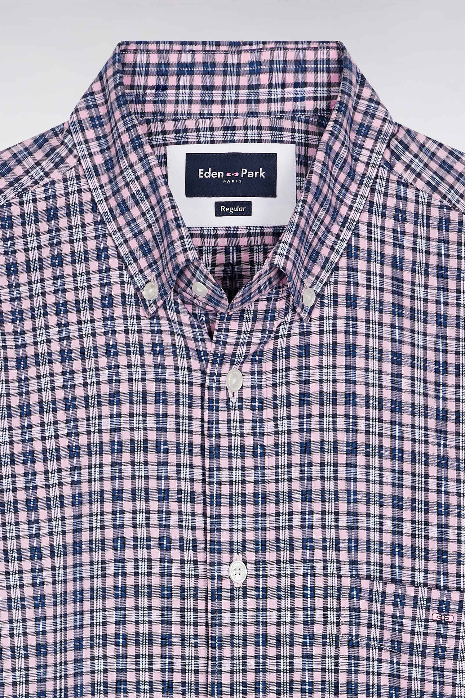 This men's plaid shirt, in navy cotton poplin punctuated with beige or pink, offers natural, understated elegance. Its straight cut and soft cotton make it a comfortable piece, ideal for structuring a casual outfit with style.