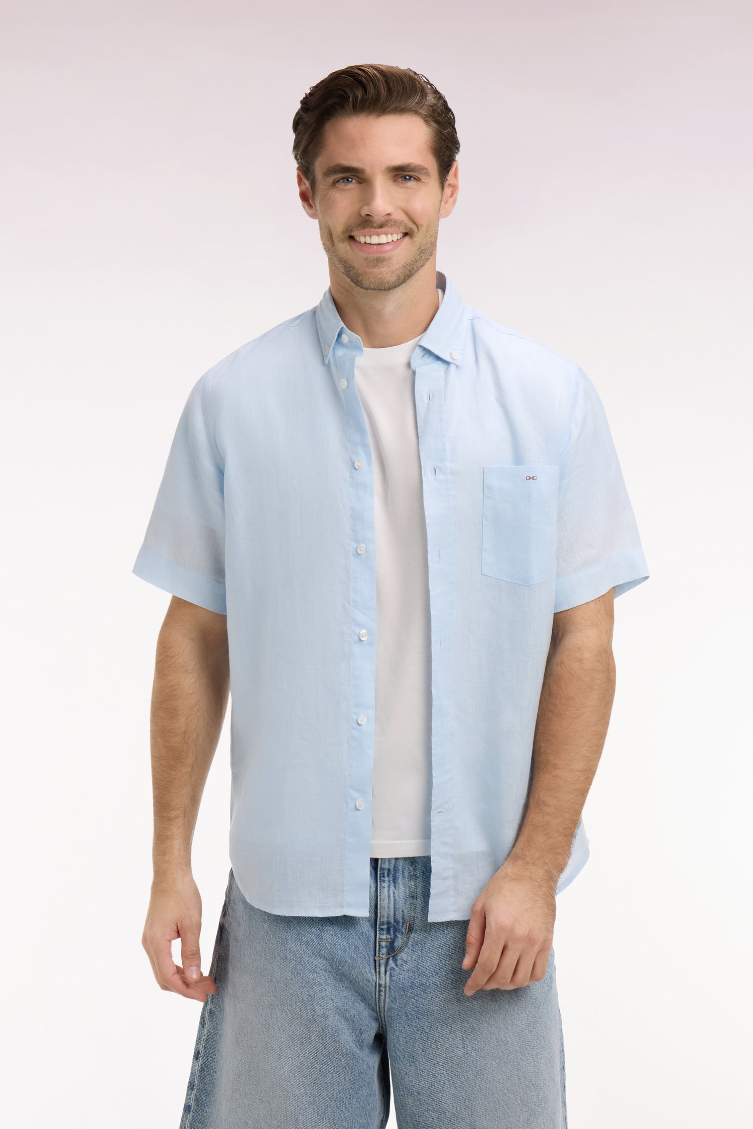 Chemise à manches courtes en lin ciel