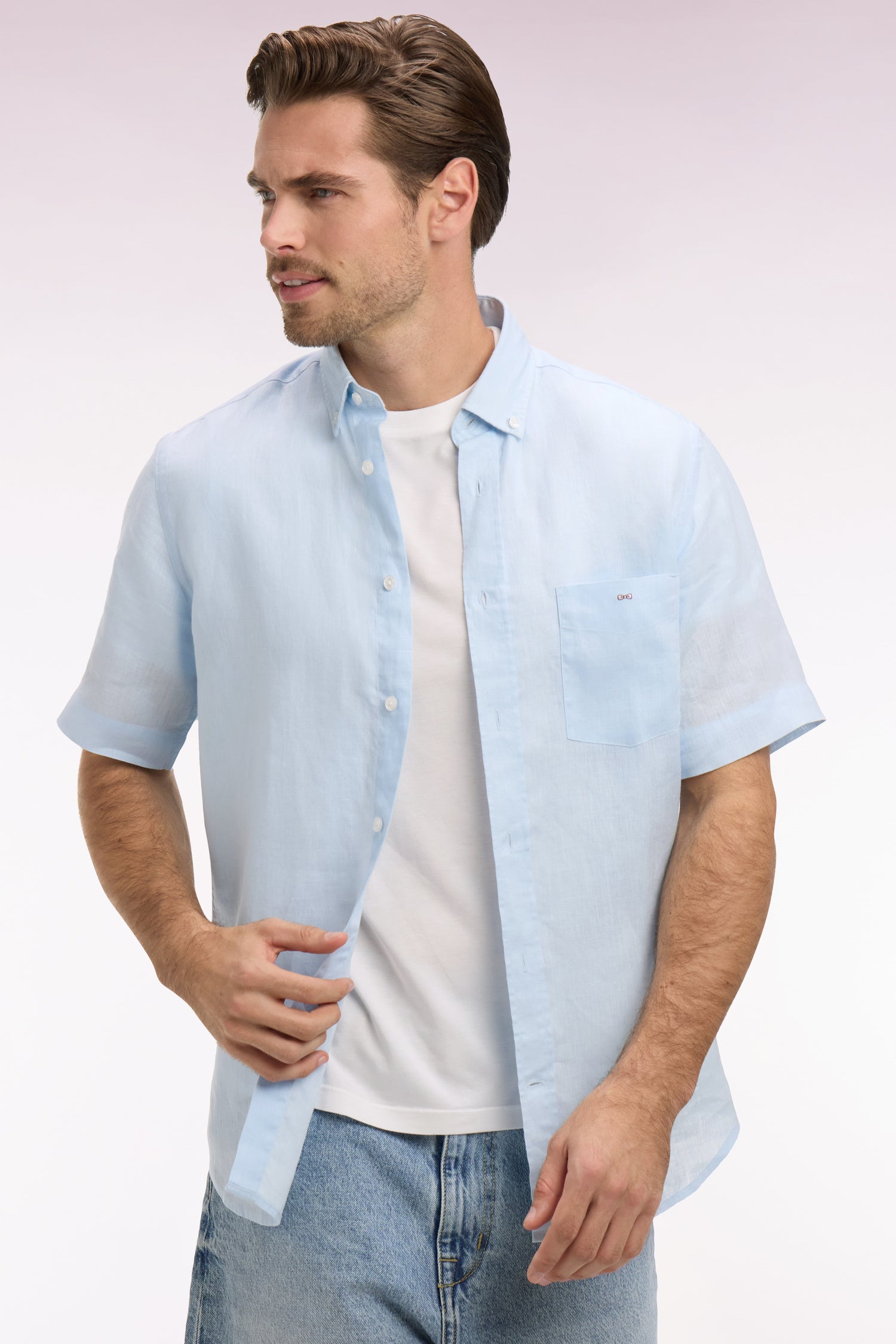 Cette chemise à manches courtes en lin pur s’impose comme l’incontournable de la saison été. Légère, respirante et naturellement texturée, cette chemise masculine offre un confort incomparable lorsque les températures s’élèvent. Sa coupe droite à pans arrondis et son col à pointes libres lui confèrent une allure décontractée mais toujours soignée, idéale pour passer avec aisance de la ville aux vacances. Déclinée dans une large palette de coloris, des tons naturels aux nuances plus lumineuses, cet indispensable se coordonne aisément à un chino léger comme à un short en toile. Ses finitions discrètes et sa matière noble, font de cette chemise en lin le pilier d'un vestiaire estival, frais et élégant.