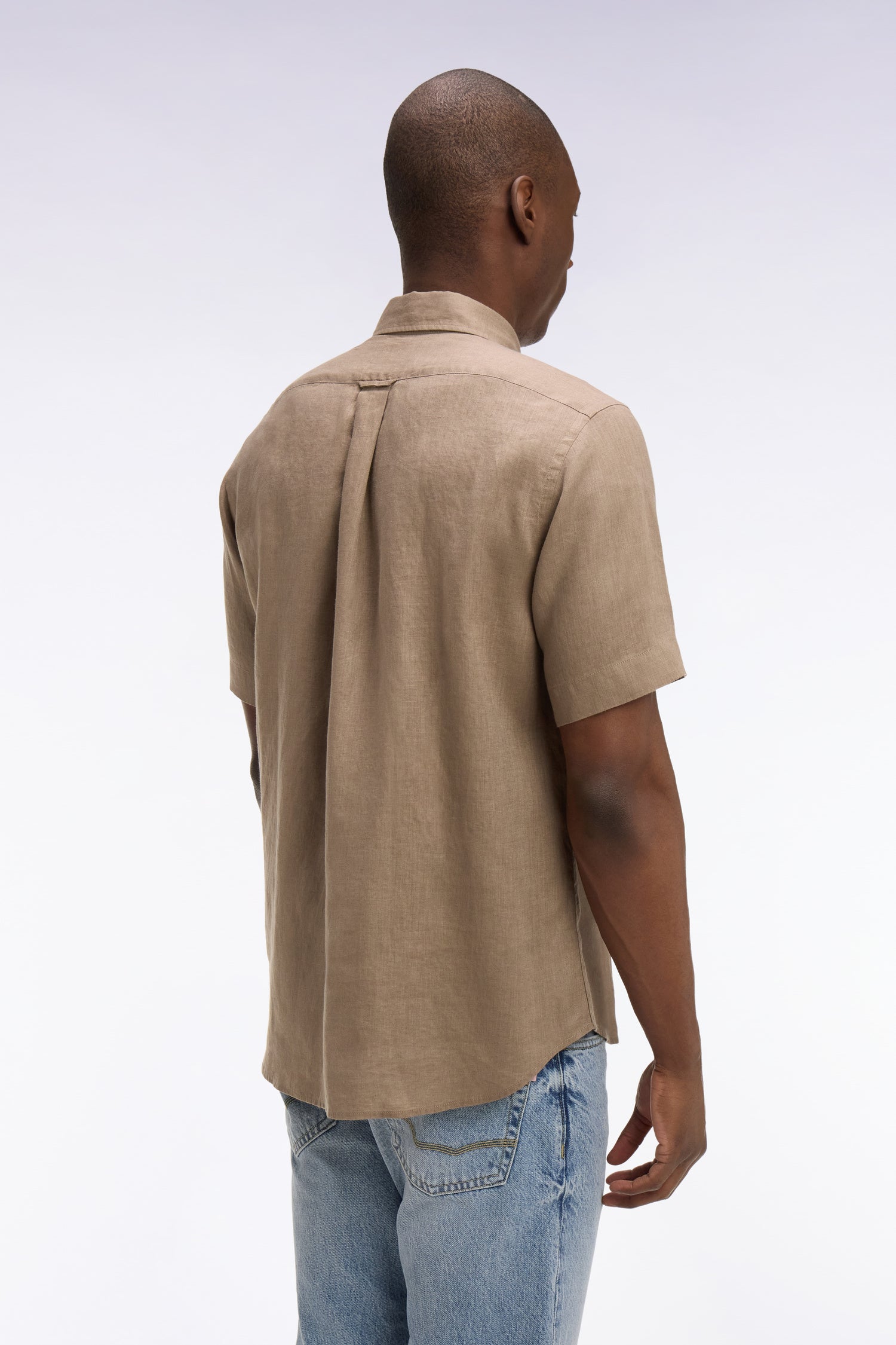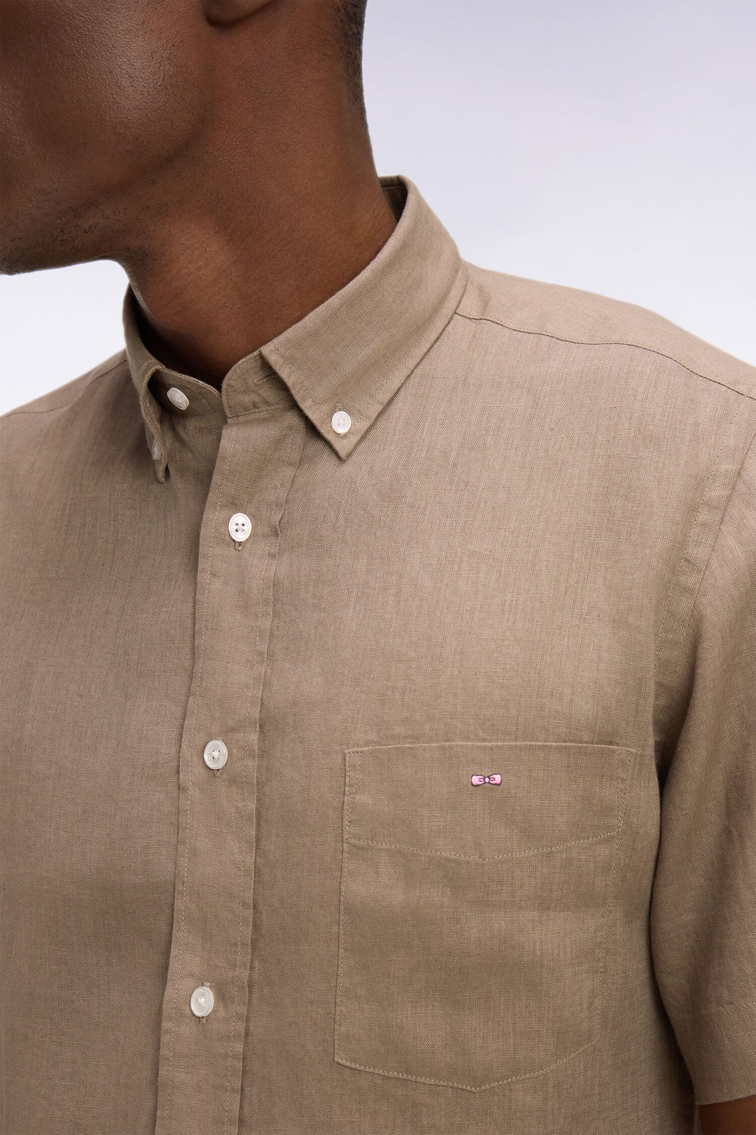 Cette chemise à manches courtes en lin pur s’impose comme l’incontournable de la saison été. Légère, respirante et naturellement texturée, cette chemise masculine offre un confort incomparable lorsque les températures s’élèvent. Sa coupe droite à pans arrondis et son col à pointes libres lui confèrent une allure décontractée mais toujours soignée, idéale pour passer avec aisance de la ville aux vacances. Déclinée dans une large palette de coloris, des tons naturels aux nuances plus lumineuses, cet indispensable se coordonne aisément à un chino léger comme à un short en toile. Ses finitions discrètes et sa matière noble, font de cette chemise en lin le pilier d'un vestiaire estival, frais et élégant.