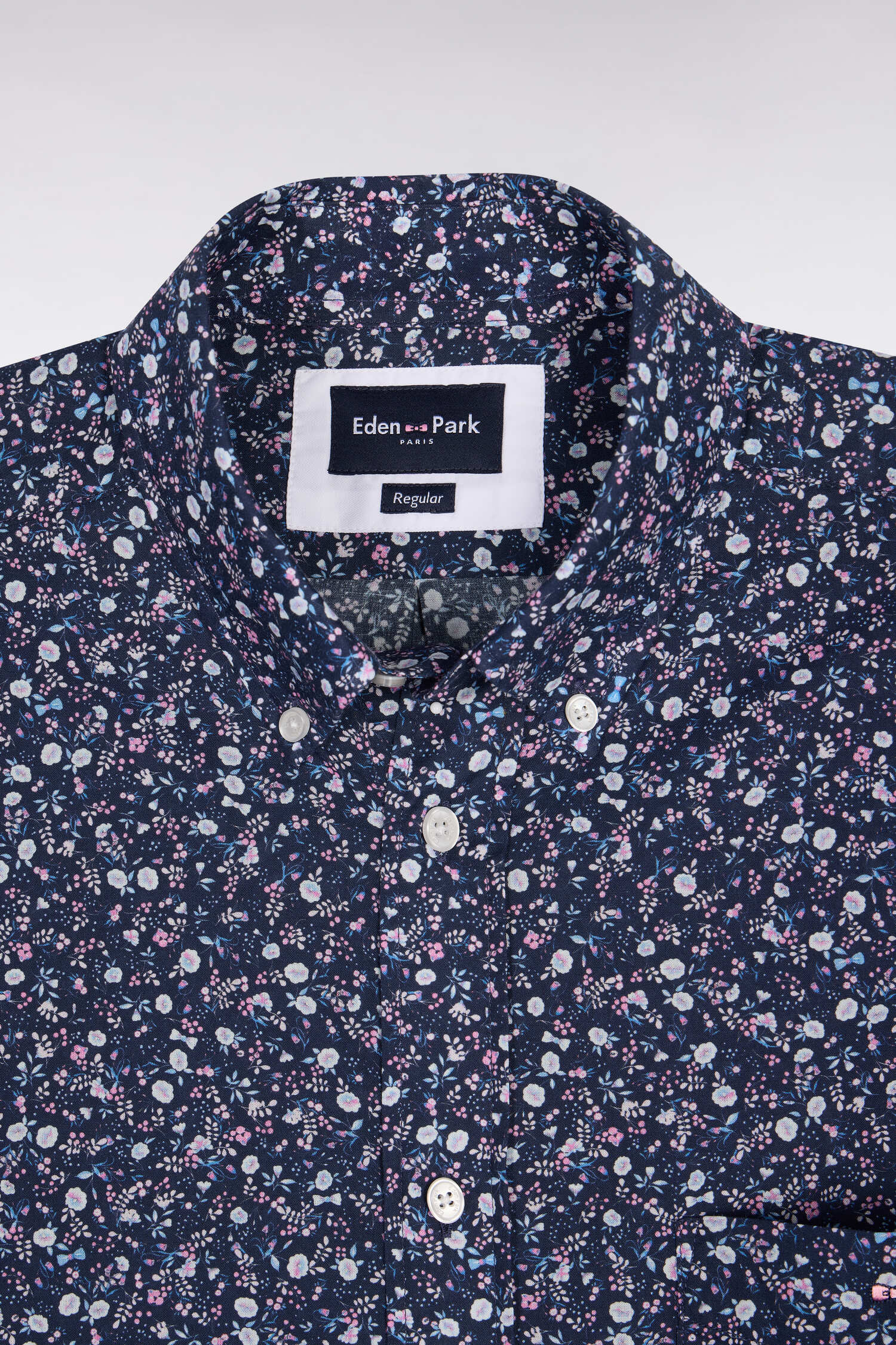 Chemise à manches courtes en popeline de coton à imprimé floral marine