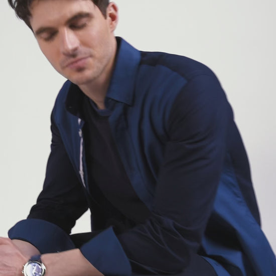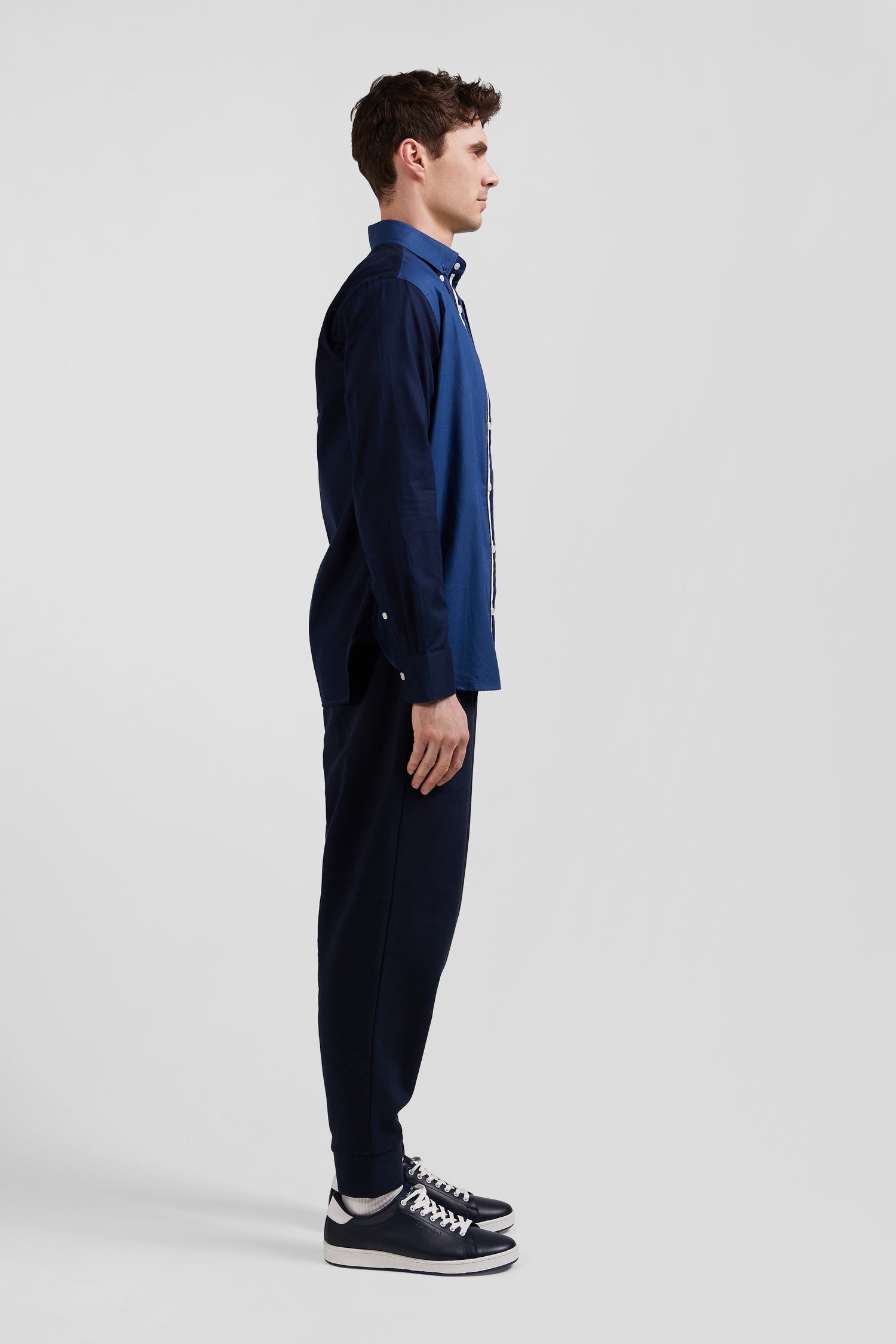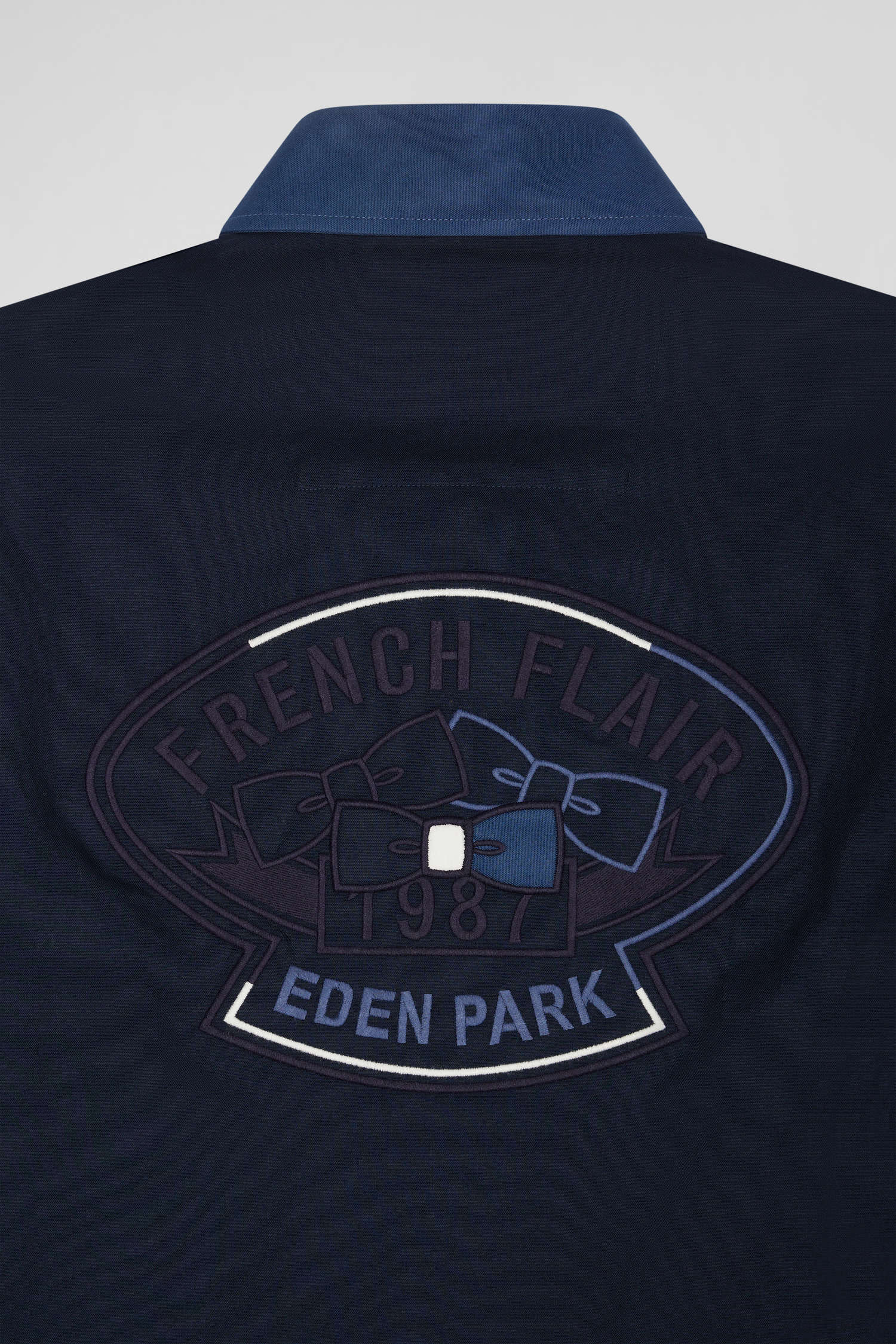 For this men's shirt in shades of navy and dark blue, we chose pin point cotton, renowned for its dense weave that offers a more pronounced texture and greater robustness than poplin, while ensuring comfort and freedom of movement. The back of the shirt features embroidery reflecting Eden Park's sporting heritage. Tricolor details on the button placket, echoing the embroidery on the bow tie, give it a sporty elegance, embodying the French Flair spirit.