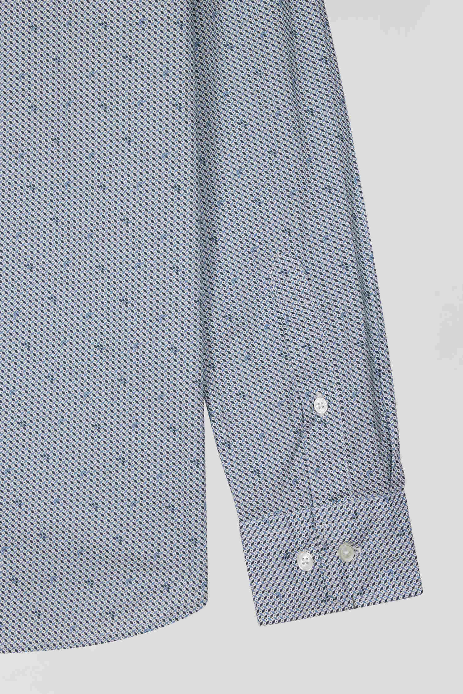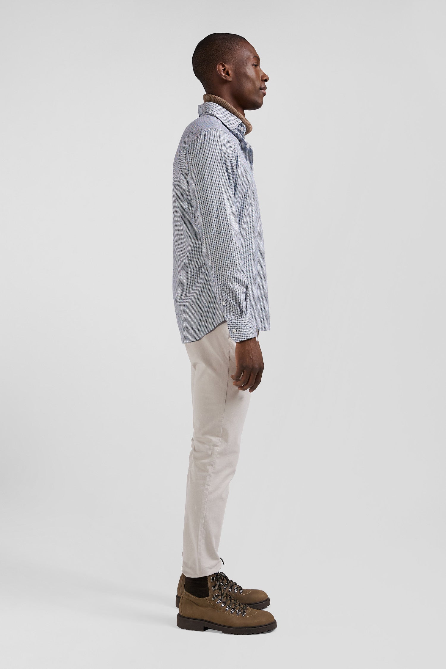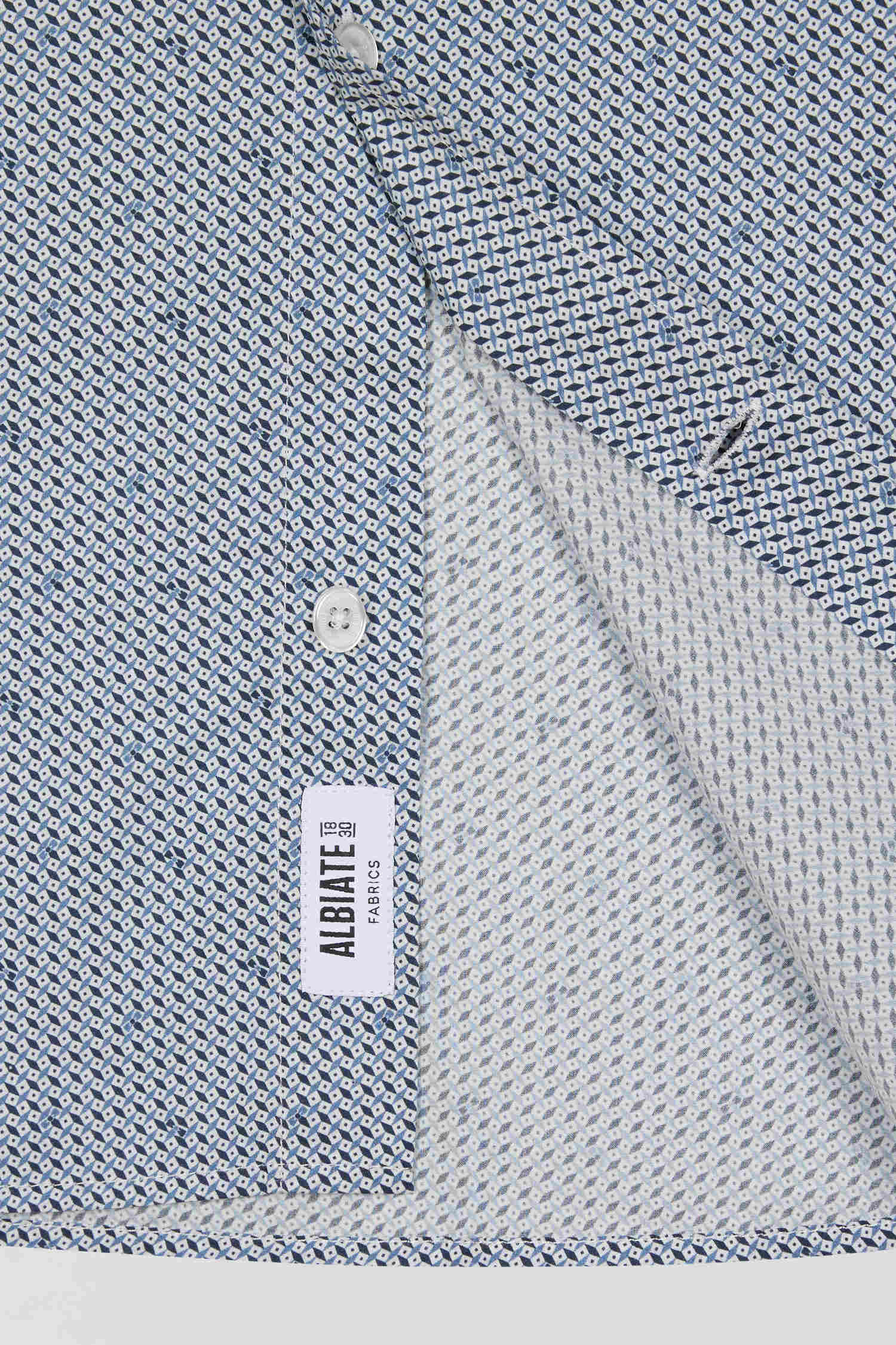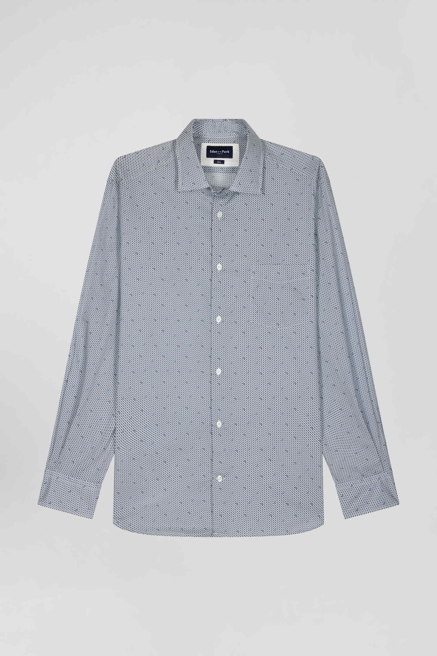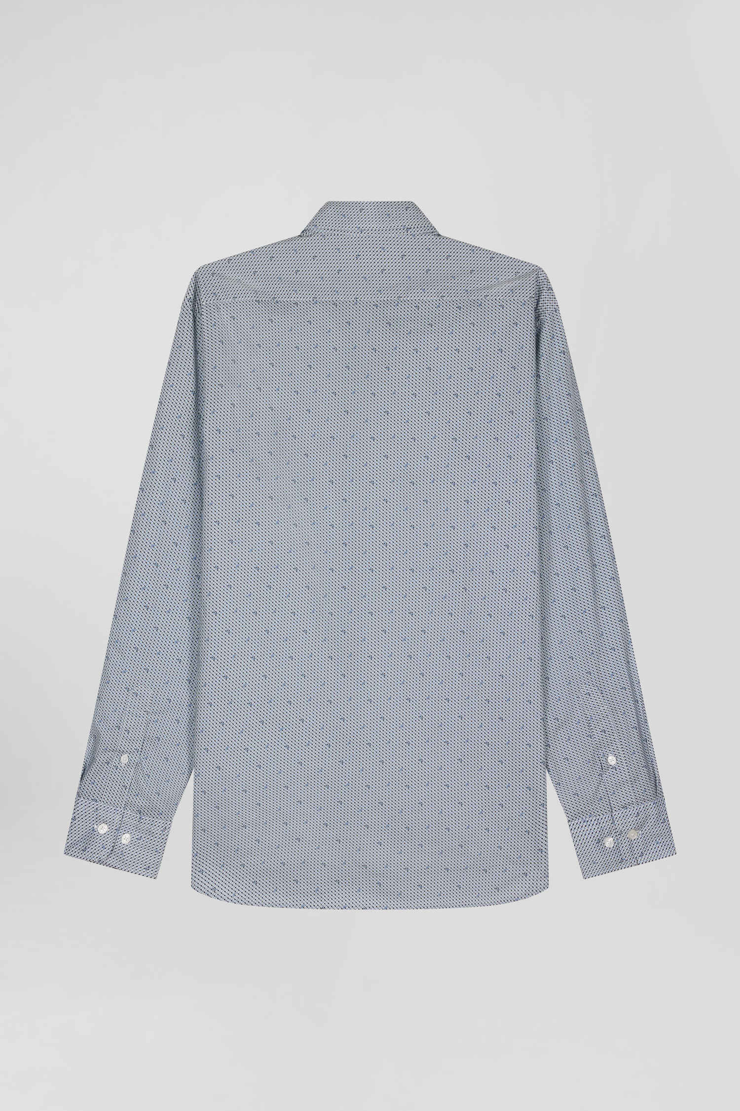 This slim-fit shirt in blue cotton is embellished with graphic micro-patterns for a contemporary touch. With its chest pocket and slim fit, this easy-to-wear men's shirt offers sophisticated, on-trend styling for everyday wear or a dressier occasion.