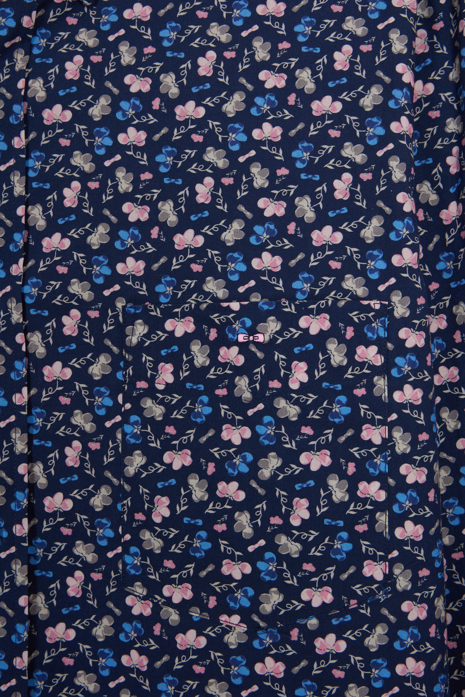 Each microprint in our fashion collections is a unique creation, designed exclusively for our company. On each one, fans of our French Flair wardrobe will recognize our emblem: the pink bow tie, hidden in its floral micro-patterns. Here, a blue-toned print is featured on a refined cotton poplin shirt.