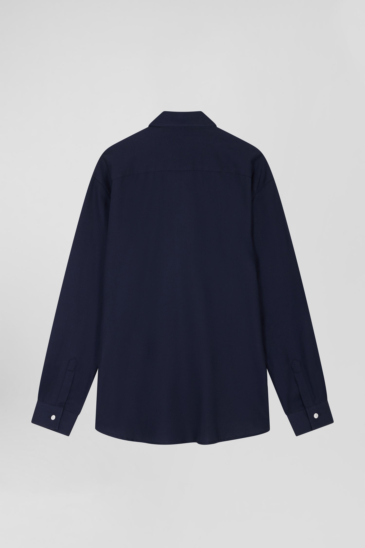 A true wardrobe essential, the cotton shirt is reinterpreted for fall-winter in a soft, warm version featuring cashmere wool. Available in indigo or camel, this streamlined shirt with its classic collar stands out for the quality of its finishing and its trendy oversized cut, ideal for your layering games.