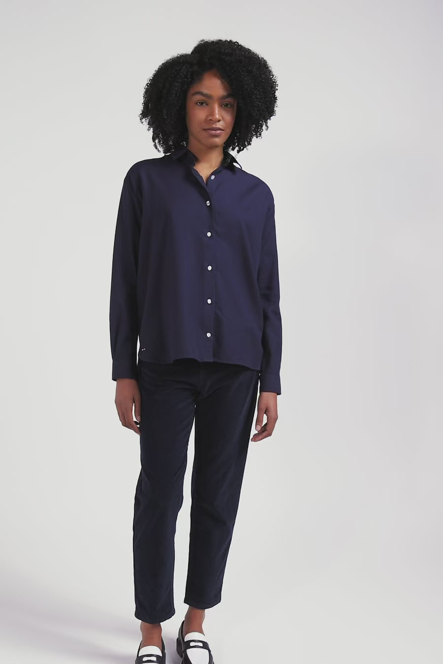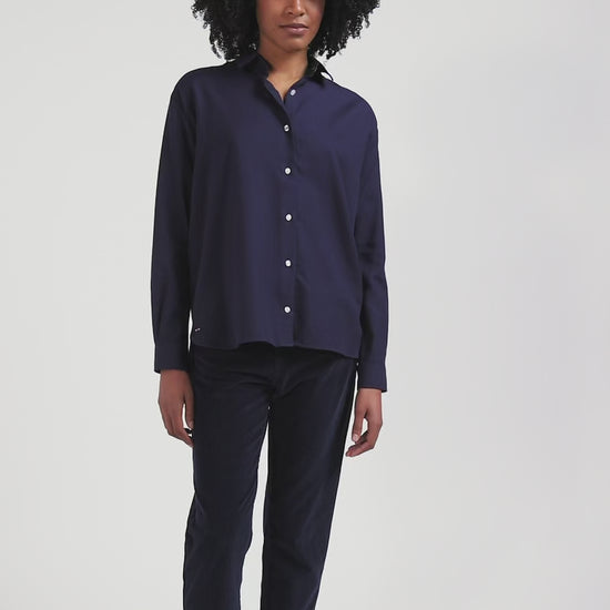 Oversize indigo cotton and cashmere shirt