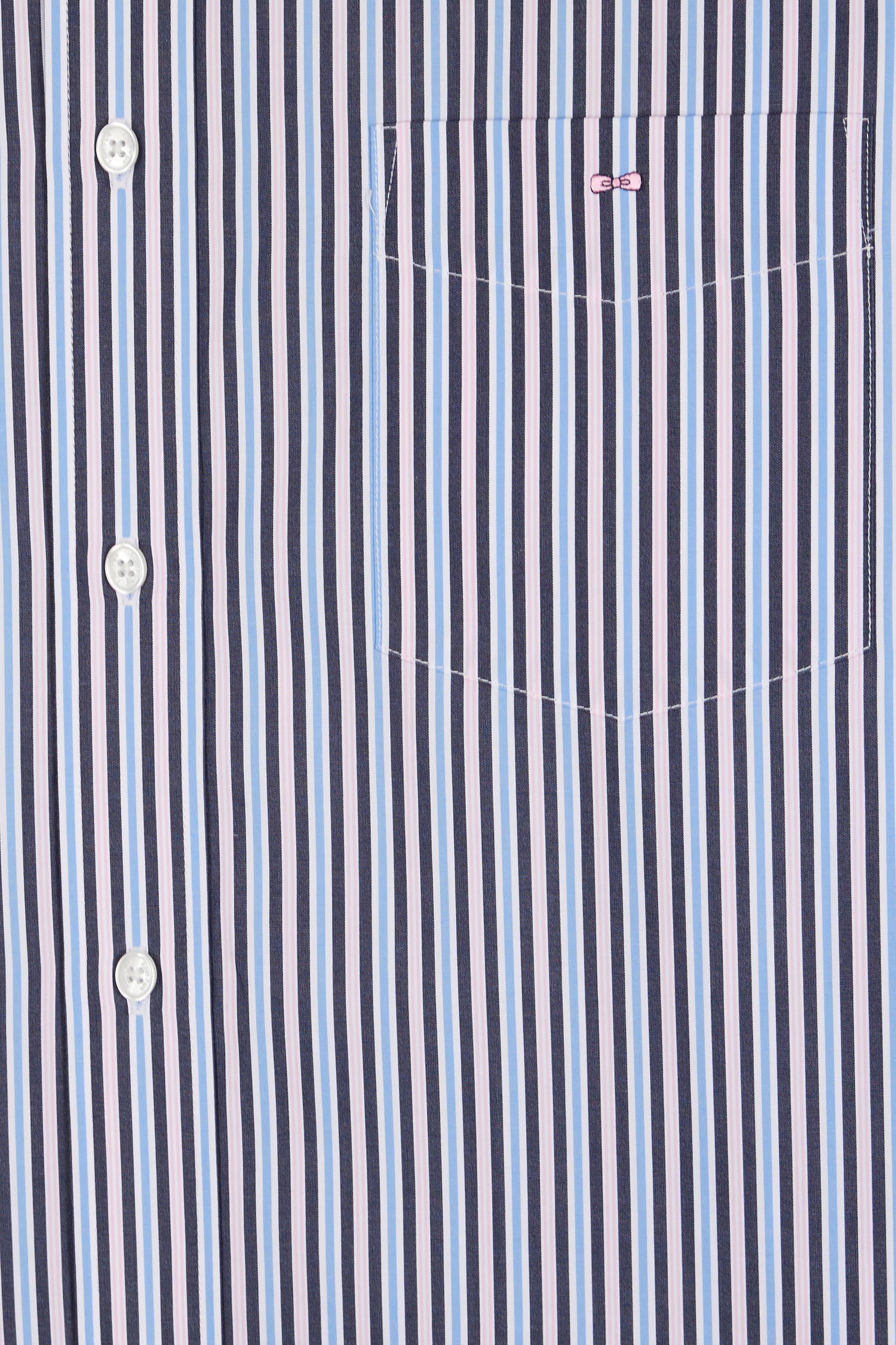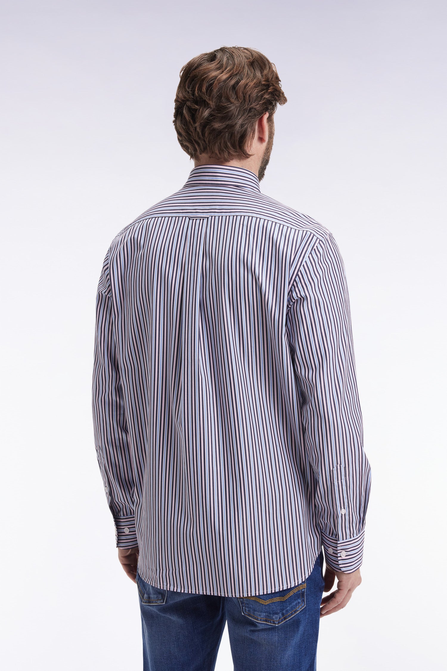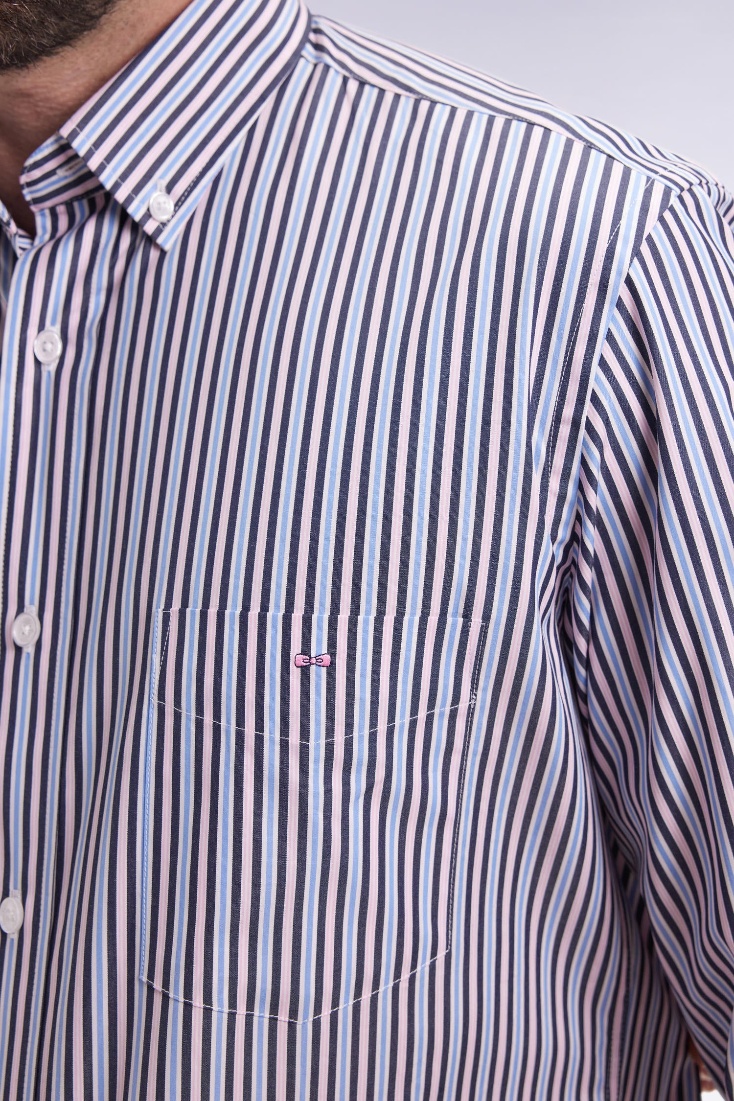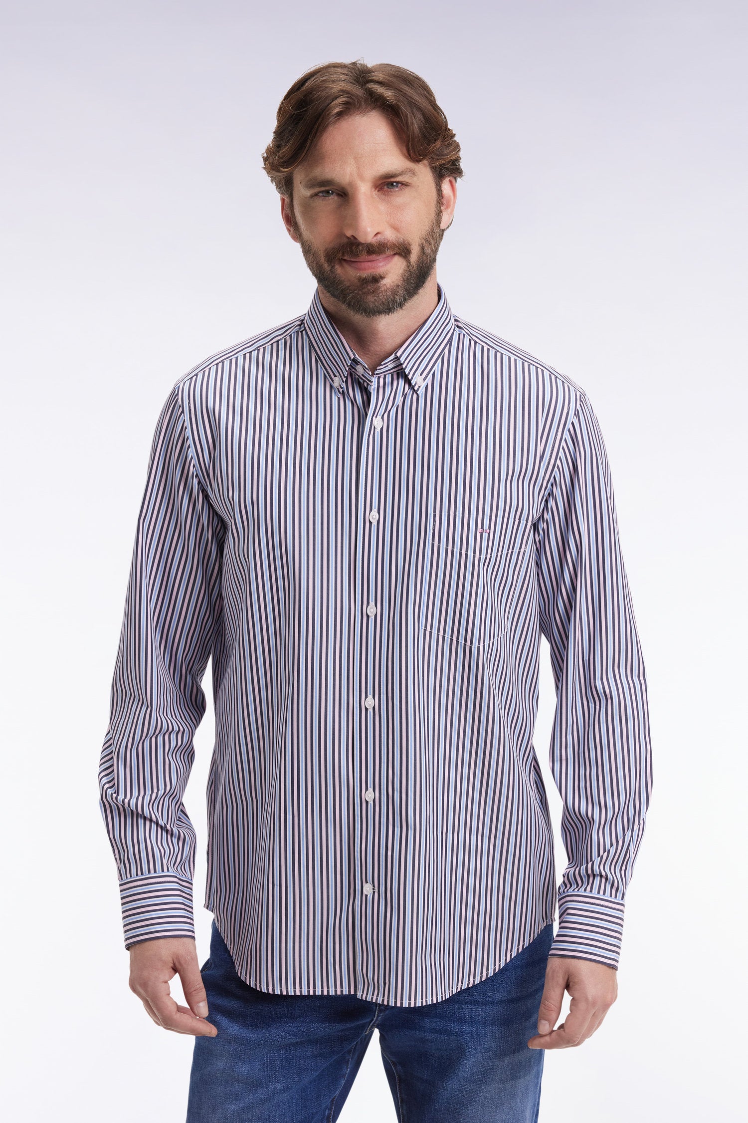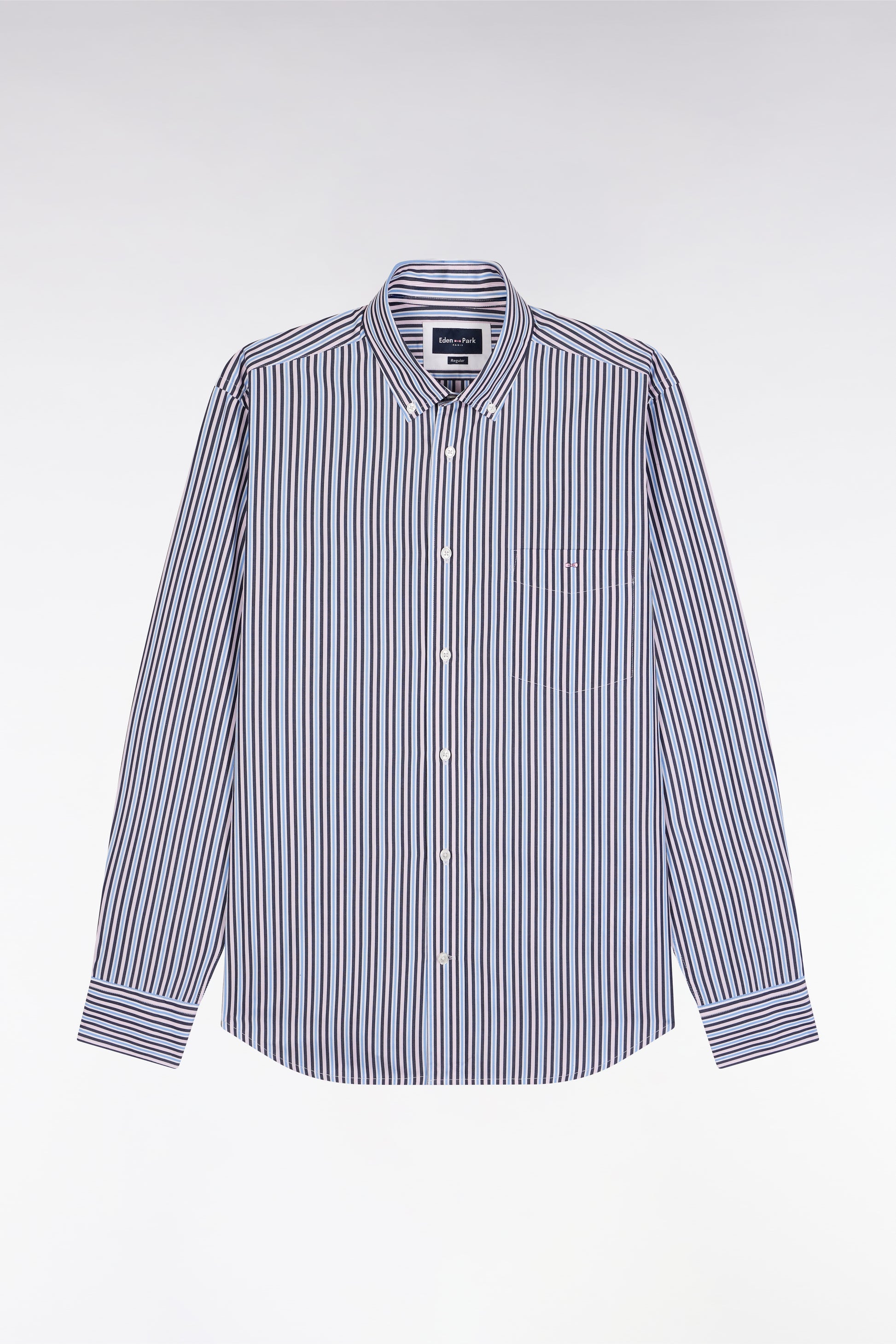 This chic, timeless men's shirt is dressed in cotton with stick stripes, giving it a subtle, graphic look. Its straight cut and button-down collar guarantee an impeccable fit, while the embroidery detail on the chest pocket punctuates the masculine silhouette with the French Flair Eden Park signature.