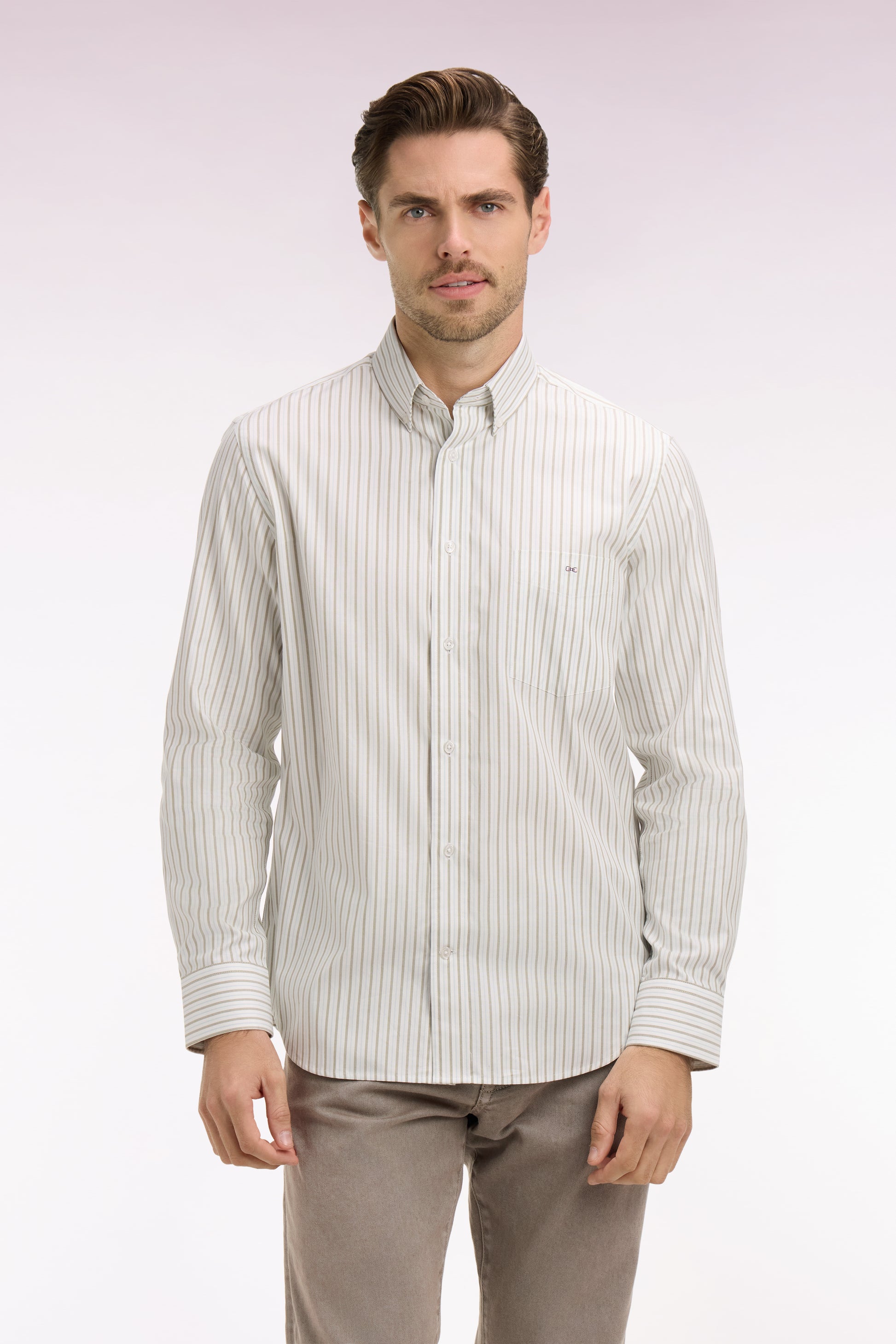 Chemise en coton pinpoint à rayures ciel coupe regular