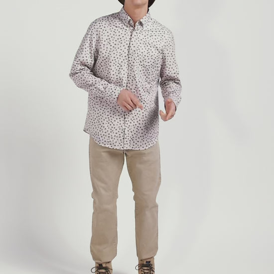Carefully crafted from high-quality cotton poplin, this men's shirt features an exclusive all-over pattern. Trendy and original, this versatile piece will match all your outfits this season. For added structure, this men's printed shirt features a patch pocket and a classic button placket.