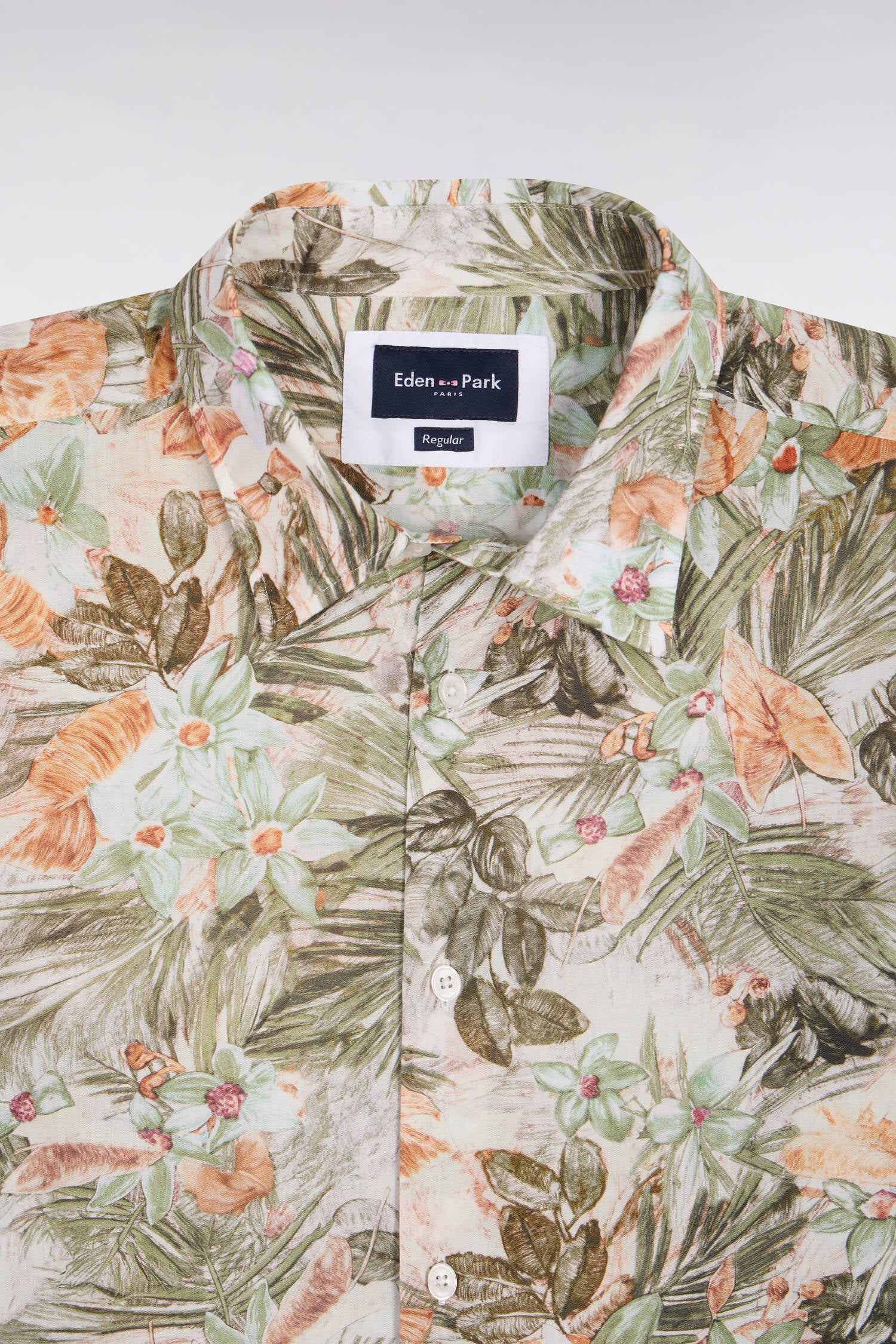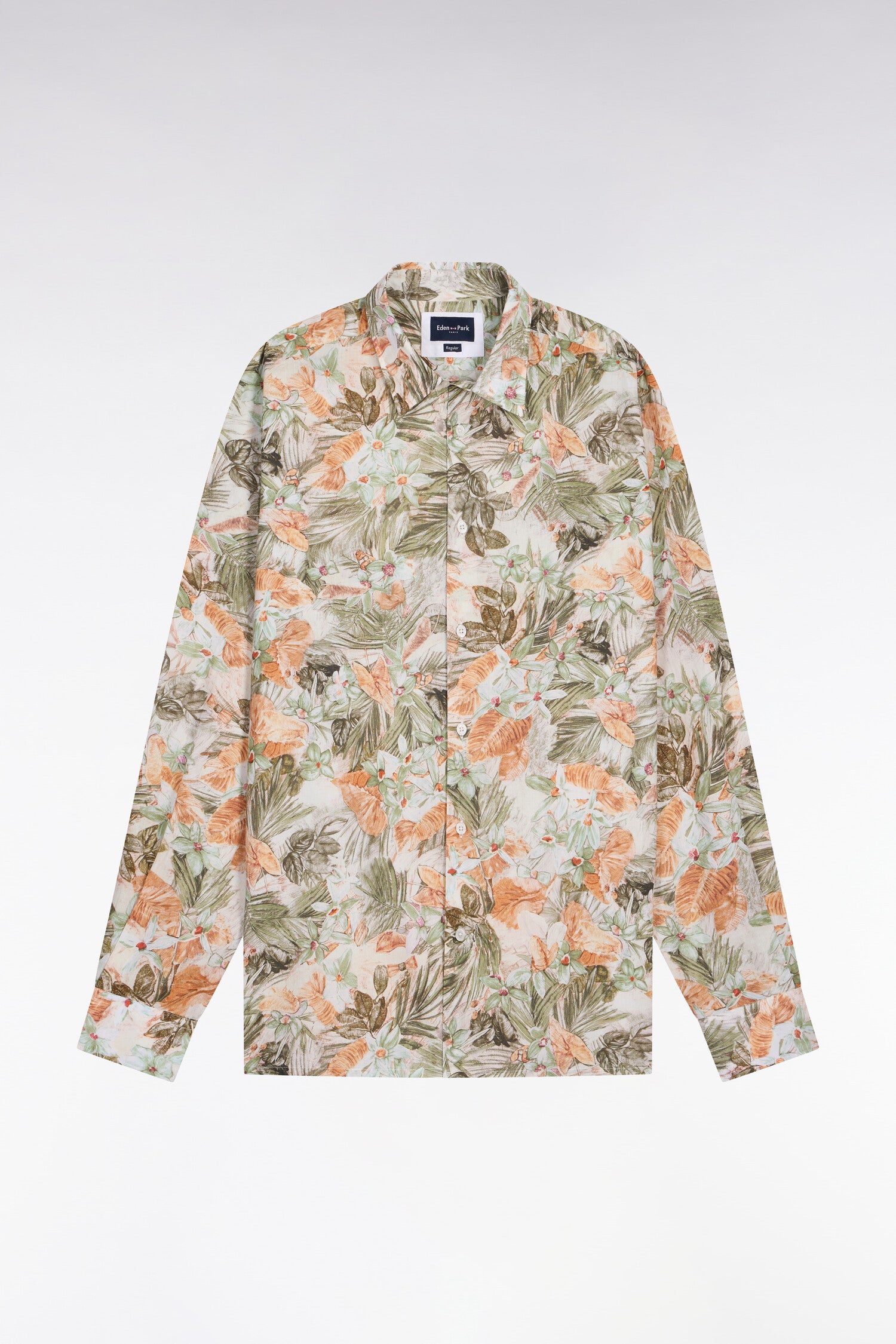 Chemise en popeline de coton beige imprimé végétal coupe regular