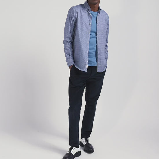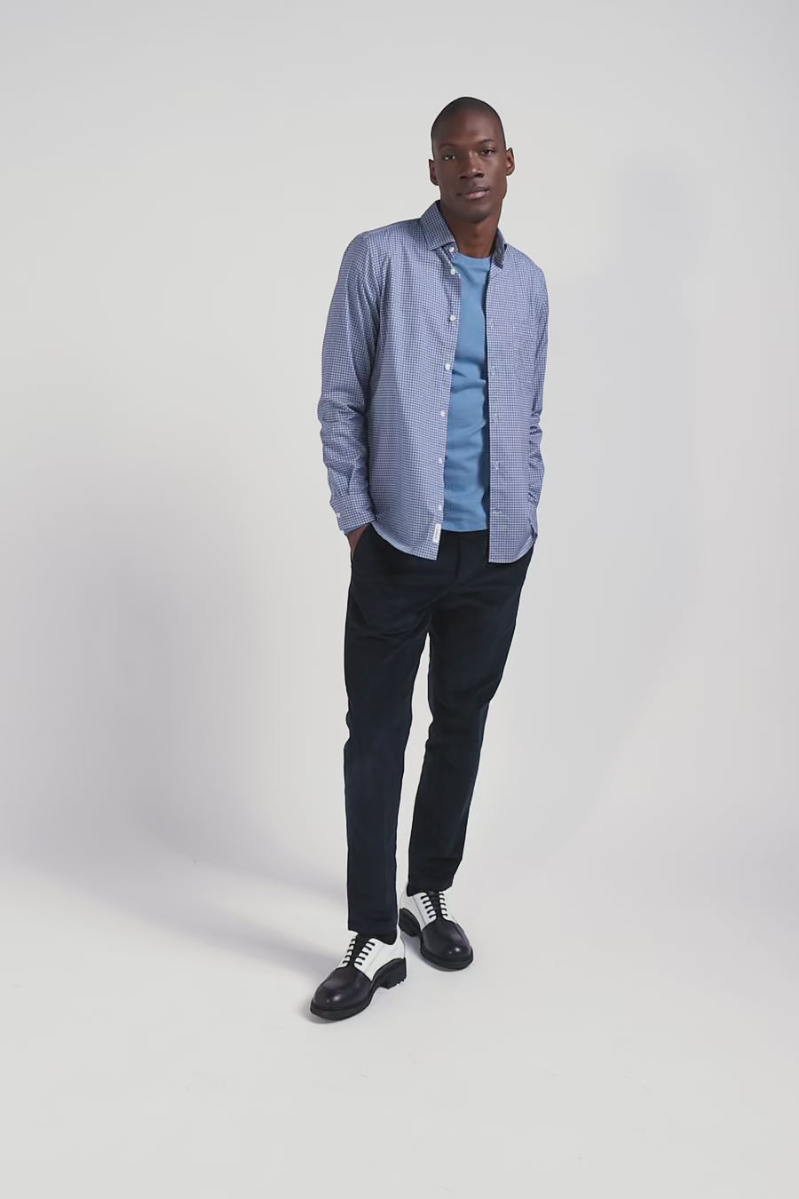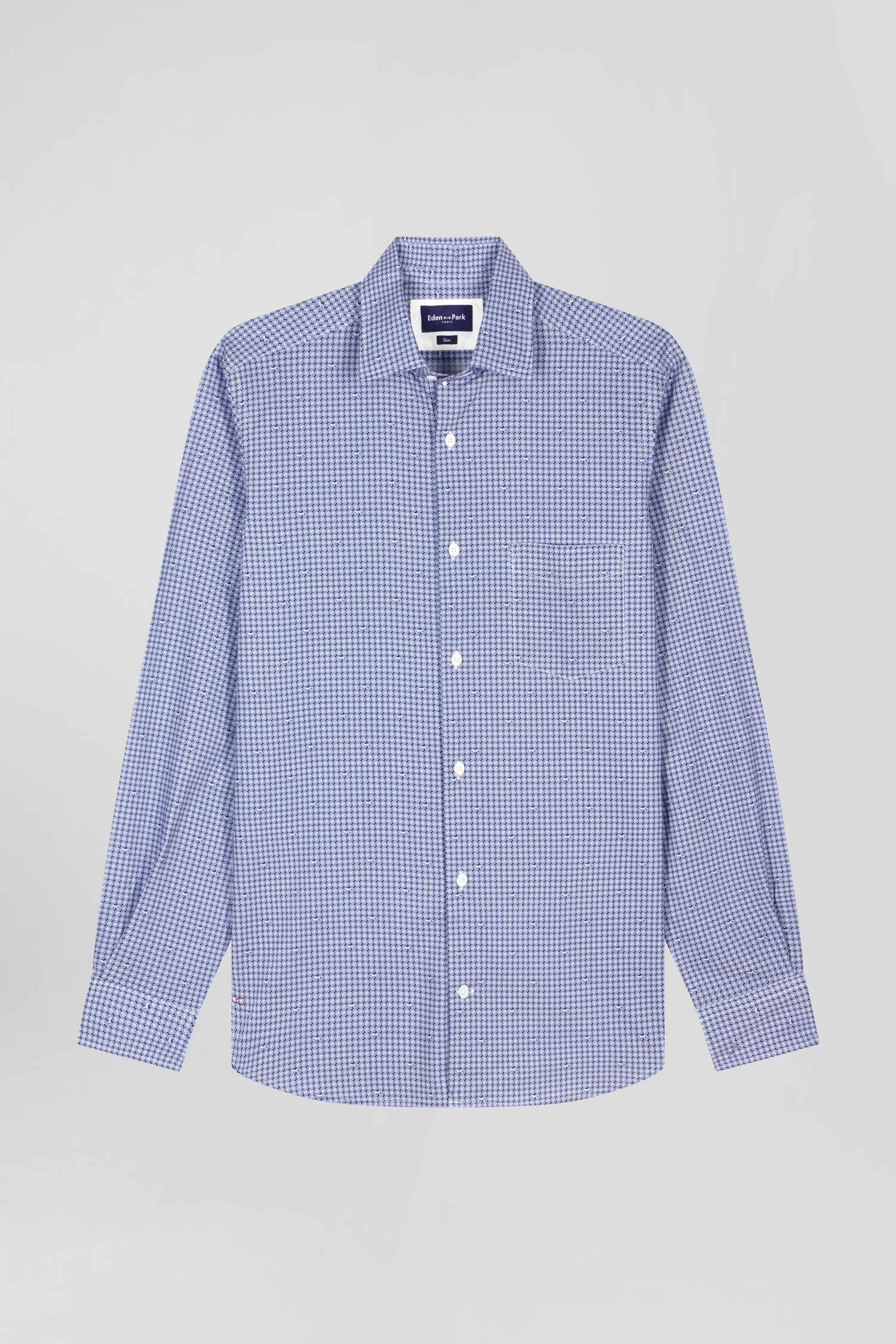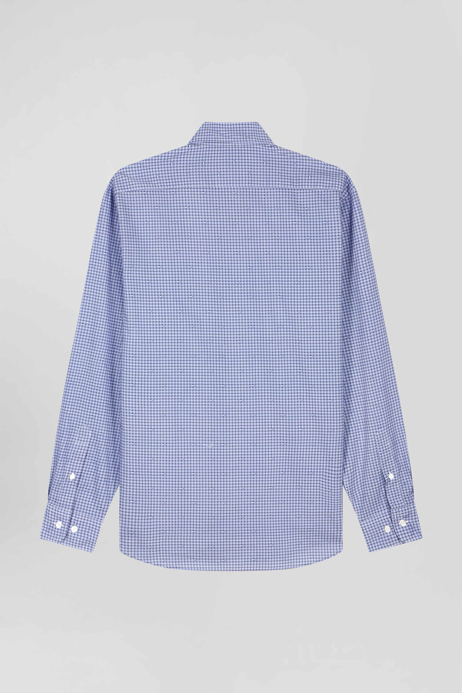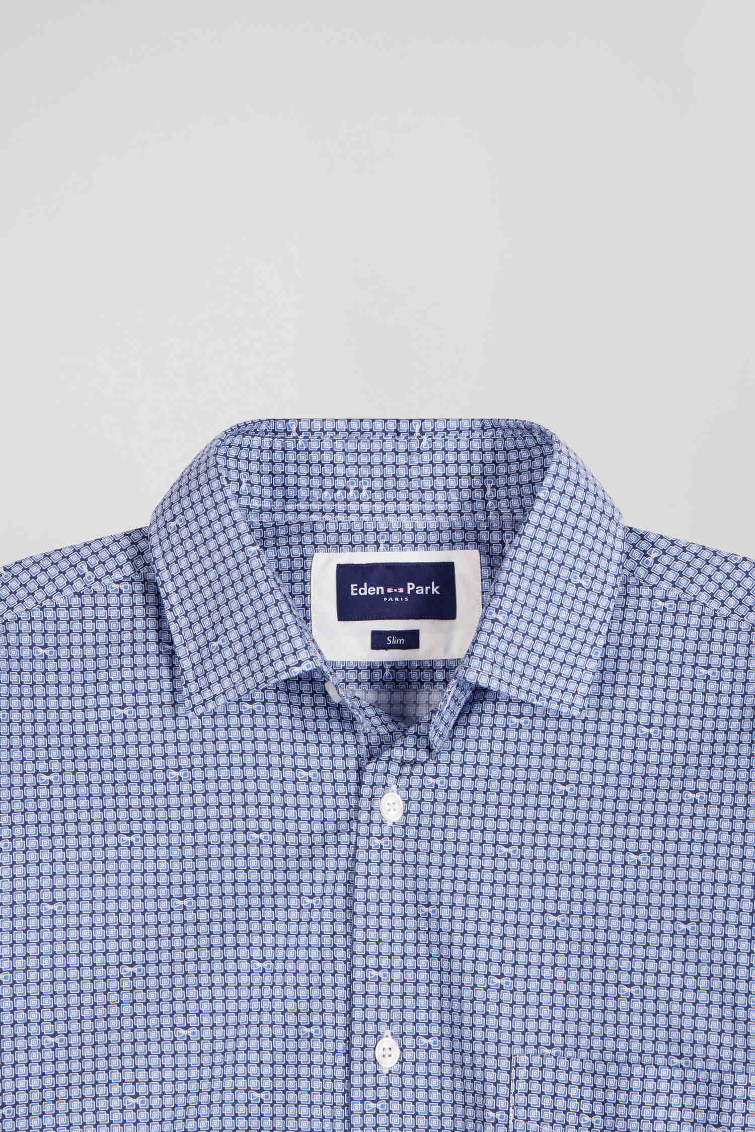 Our Italian poplin shirt is designed in a slim fit that hugs the body perfectly. Adorned with an exclusive graphic microprint, this piece combines sophistication with contemporary style. Featuring a free point collar for a modern touch, this masculine shirt also has a practical chest pocket and is enhanced by our pink bowtie embroidery at the bottom. Ideal for formal occasions or important meetings, this shirt is a must-have for every elegant wardrobe.