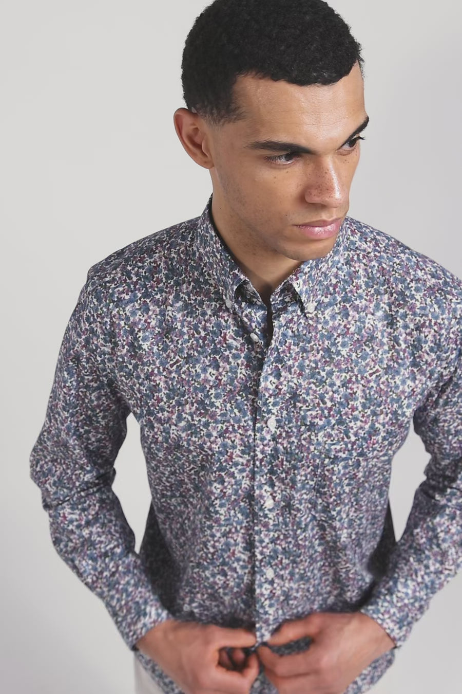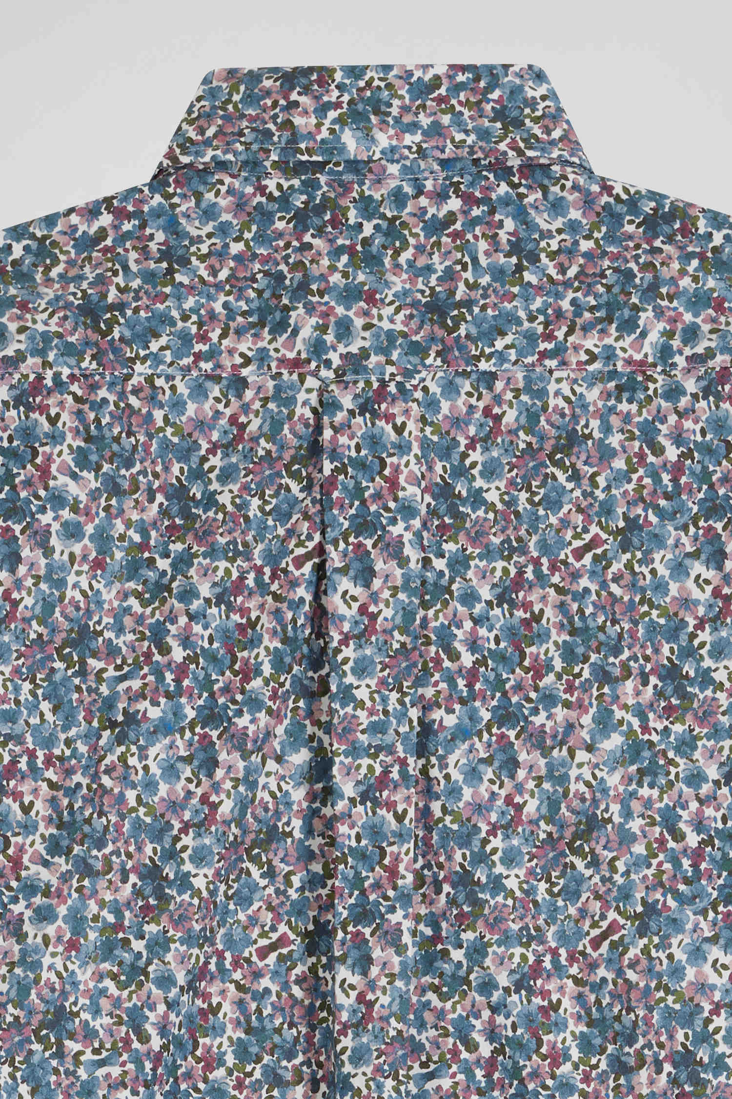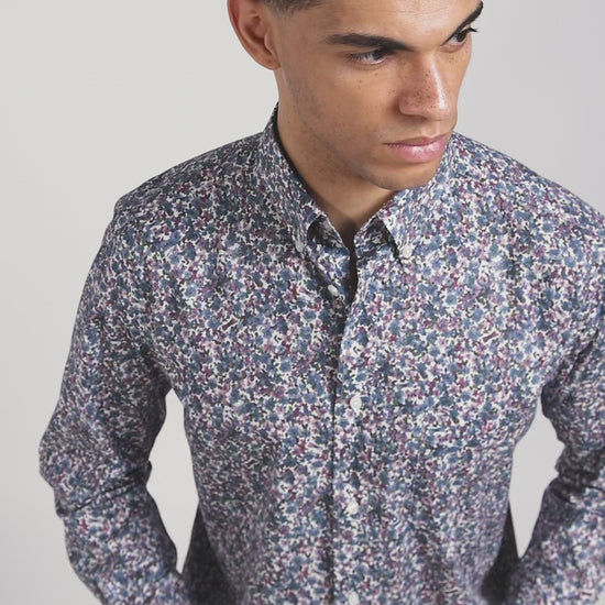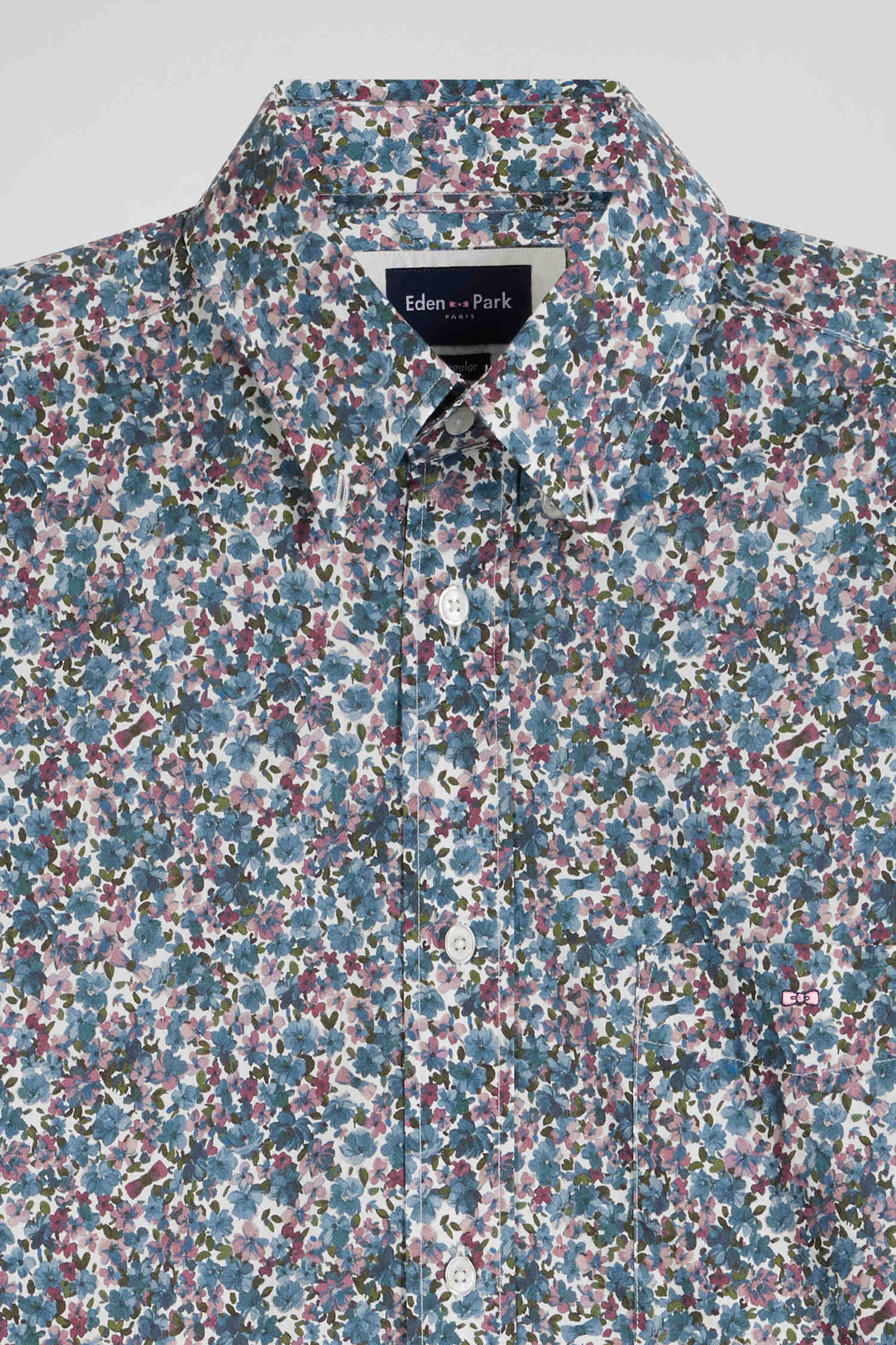 Regular blue floral print cotton poplin shirt