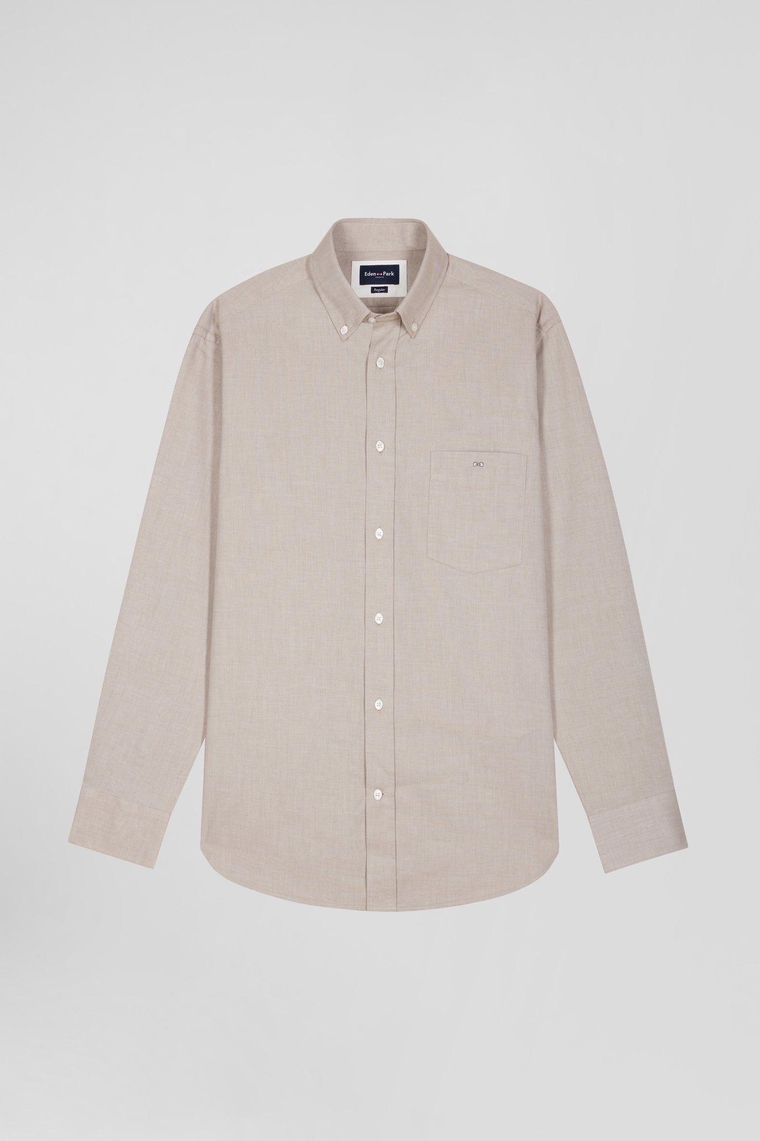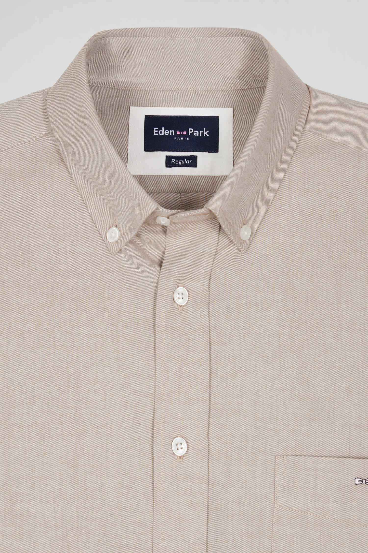 This plain cotton twill shirt features a button-down point collar, a straight Regular cut and a classic button placket, combining sobriety and elegance. Its chest pocket embroidered with our signature bow tie adds a practical touch, while its timeless colors revisit the classic wardrobe.