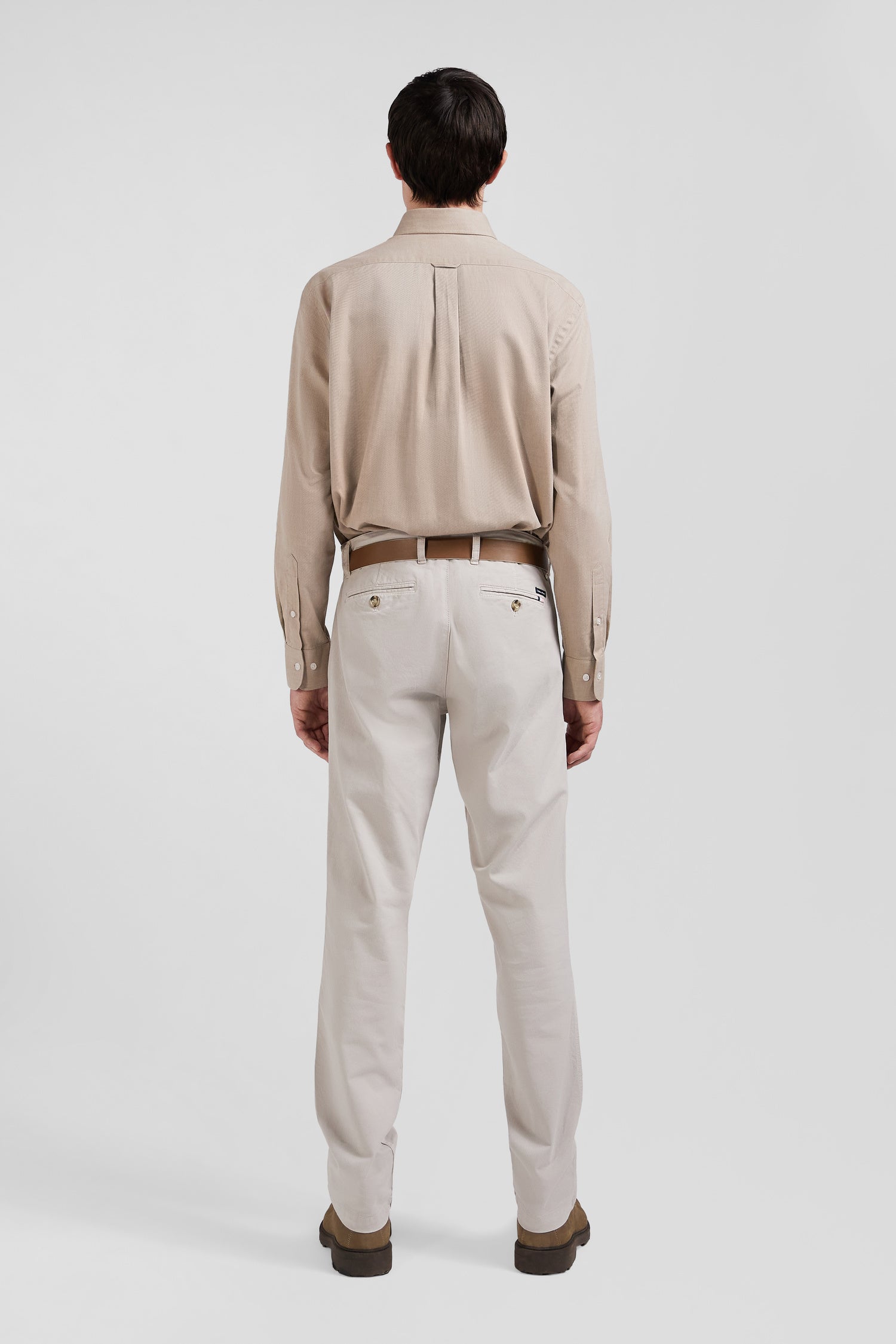Regular camel chino trousers in stretch cotton gabardine