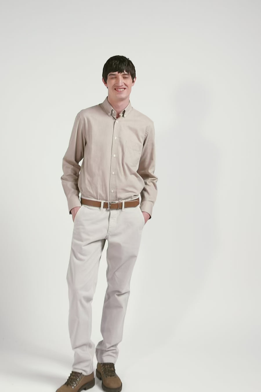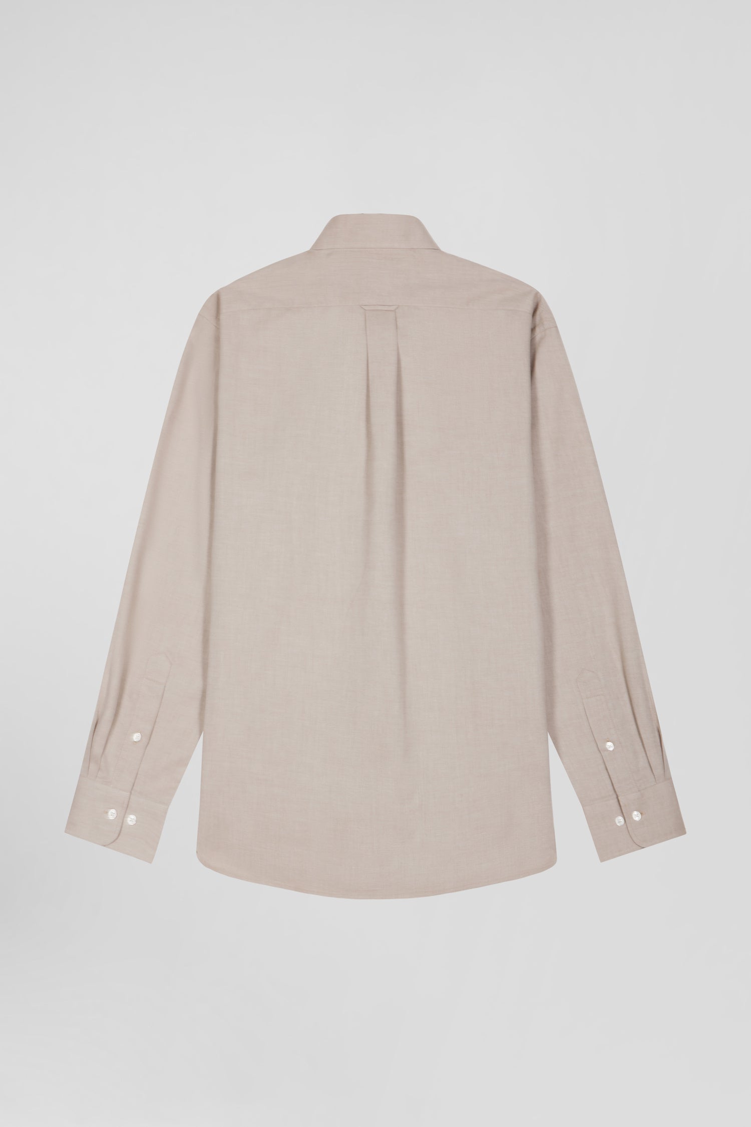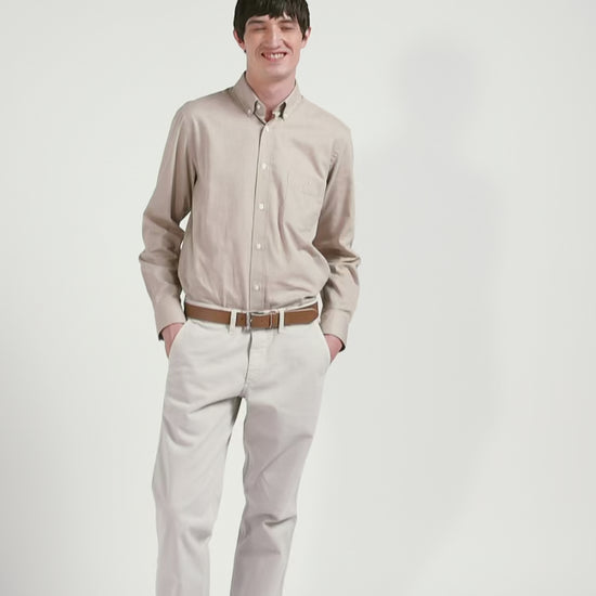 Regular plain brown cotton twill shirt with button-down collar