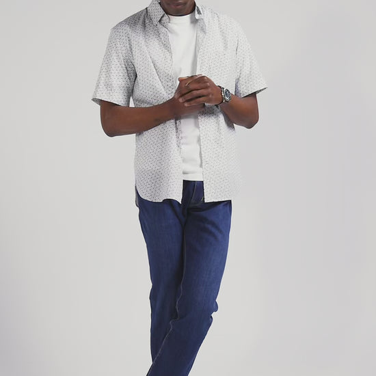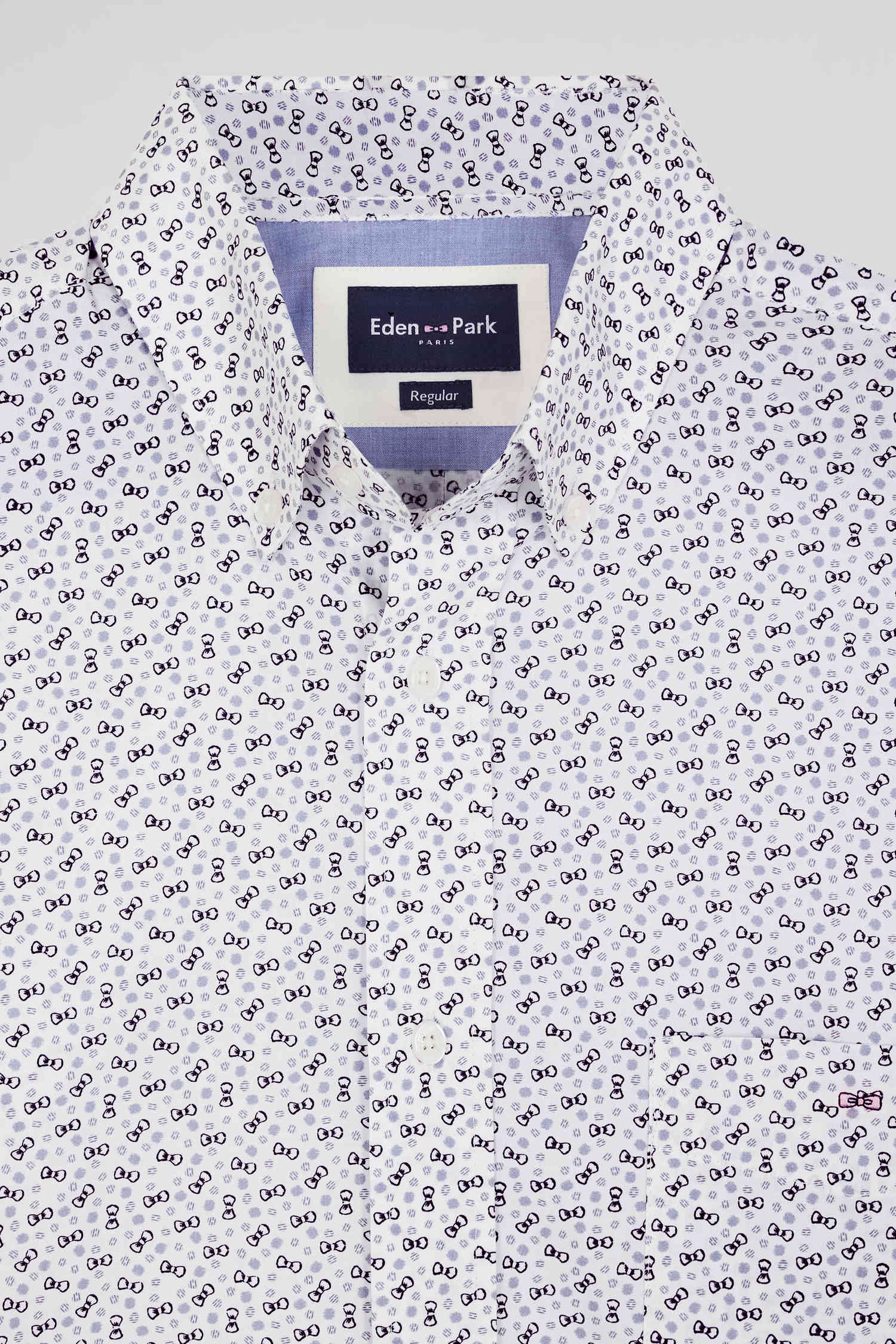 Refresh your mid-season wardrobe with our cotton blouse, adorned with a graphic print exclusive to our Maison. Perfect for sunny days, it combines a button-down collar and chest pocket for a casual yet polished look.