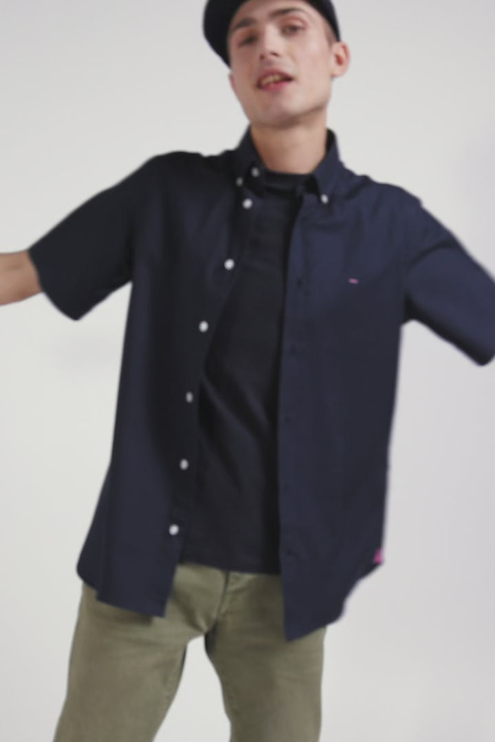 Regular navy blue cotton short-sleeved shirt with back embroidery