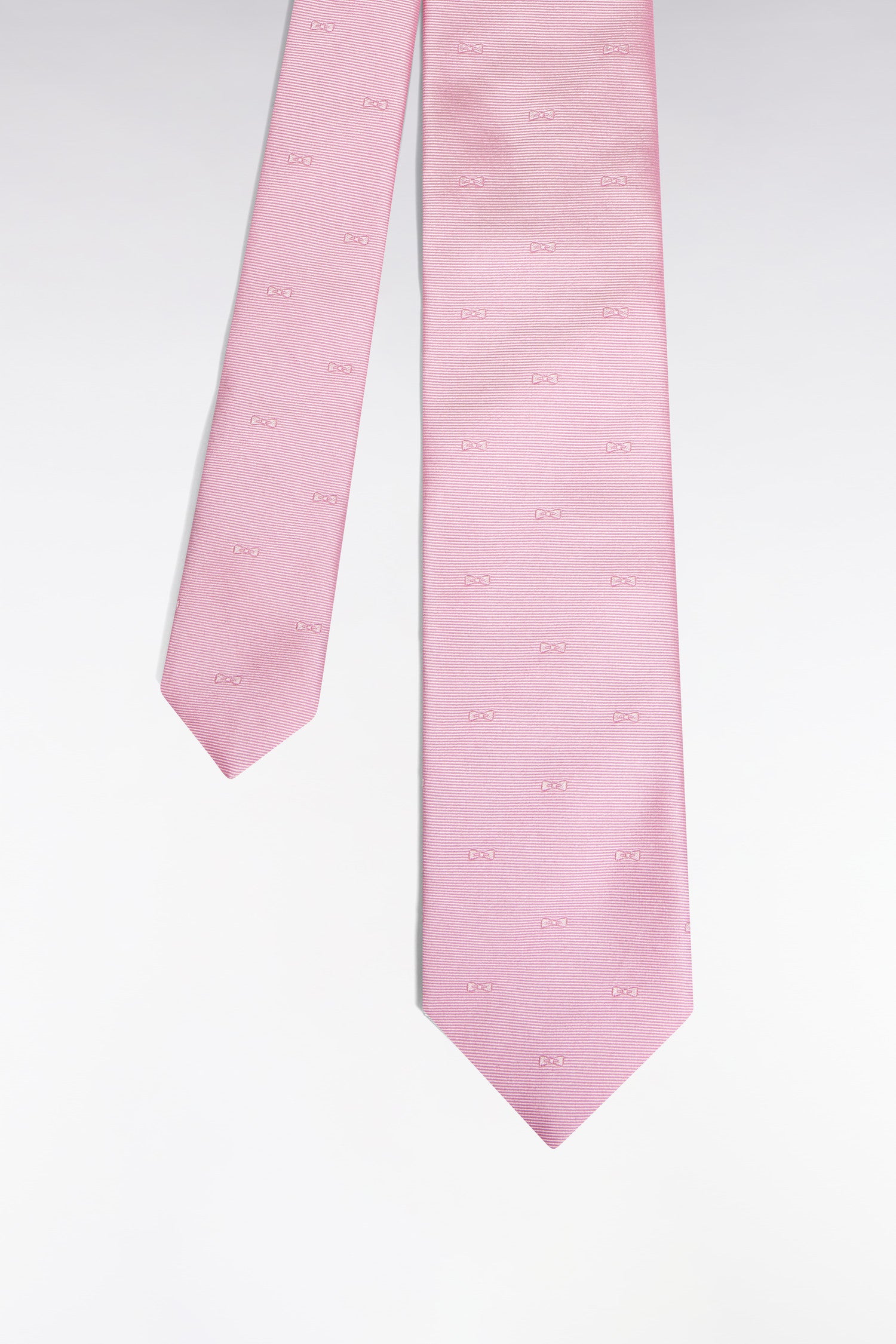 Pink silk tie with micropatterned bow tie