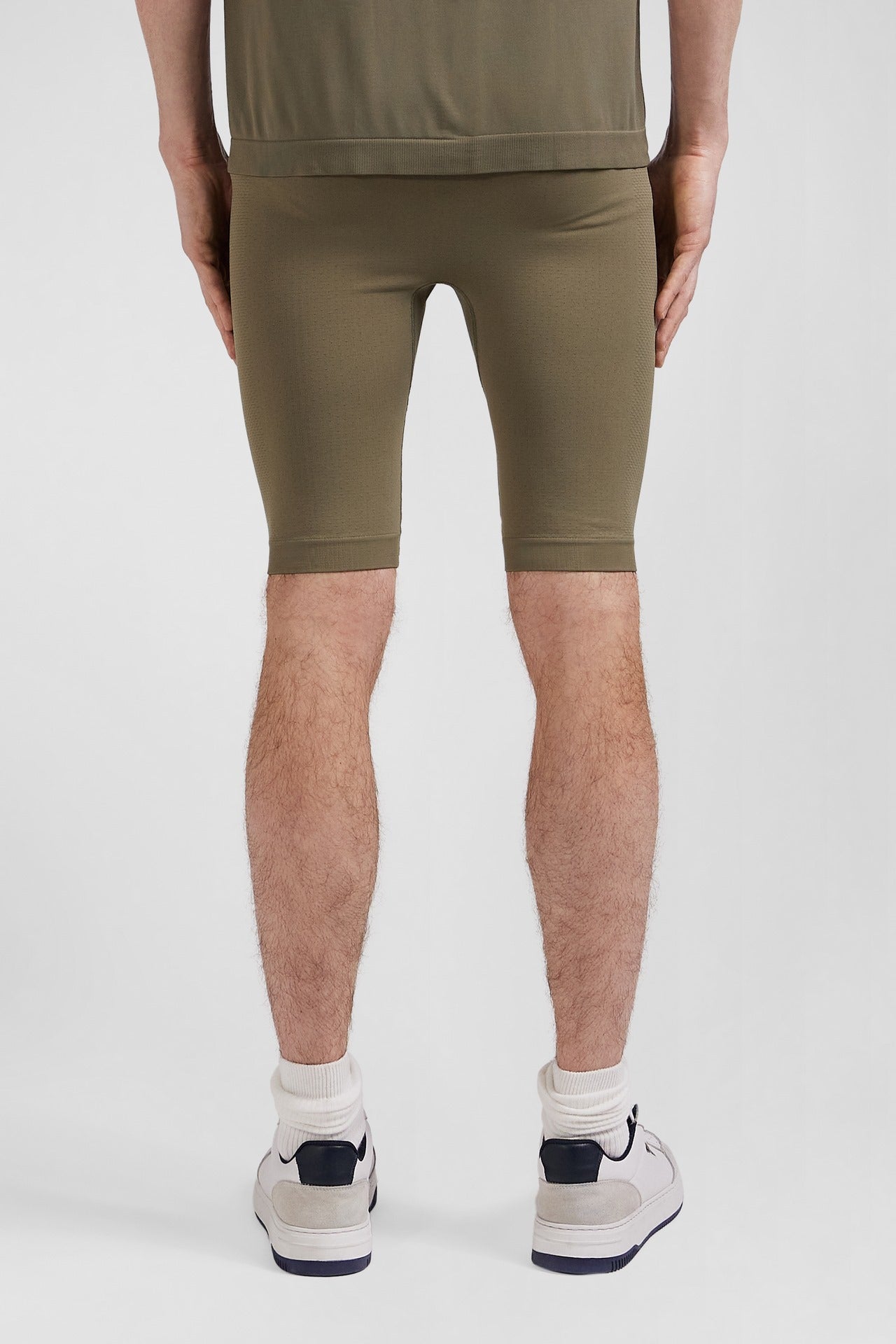 Available in khaki or navy, our masculine cycling shorts provide comfort and support during your physical activities. These men's stretch polyamide cycling shorts offer great freedom of movement, ideal for cycling, running, or gym workouts. This model meets your sporting needs and matches the tops from the same sports capsule, exclusively available online. Easy to maintain, these cycling shorts will sustain your regular training sessions without ever losing their shape.