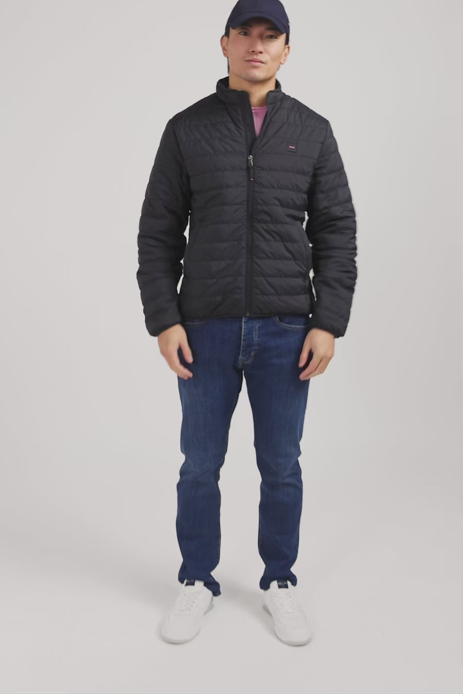 Lightweight, long-sleeved puffa jacket in black