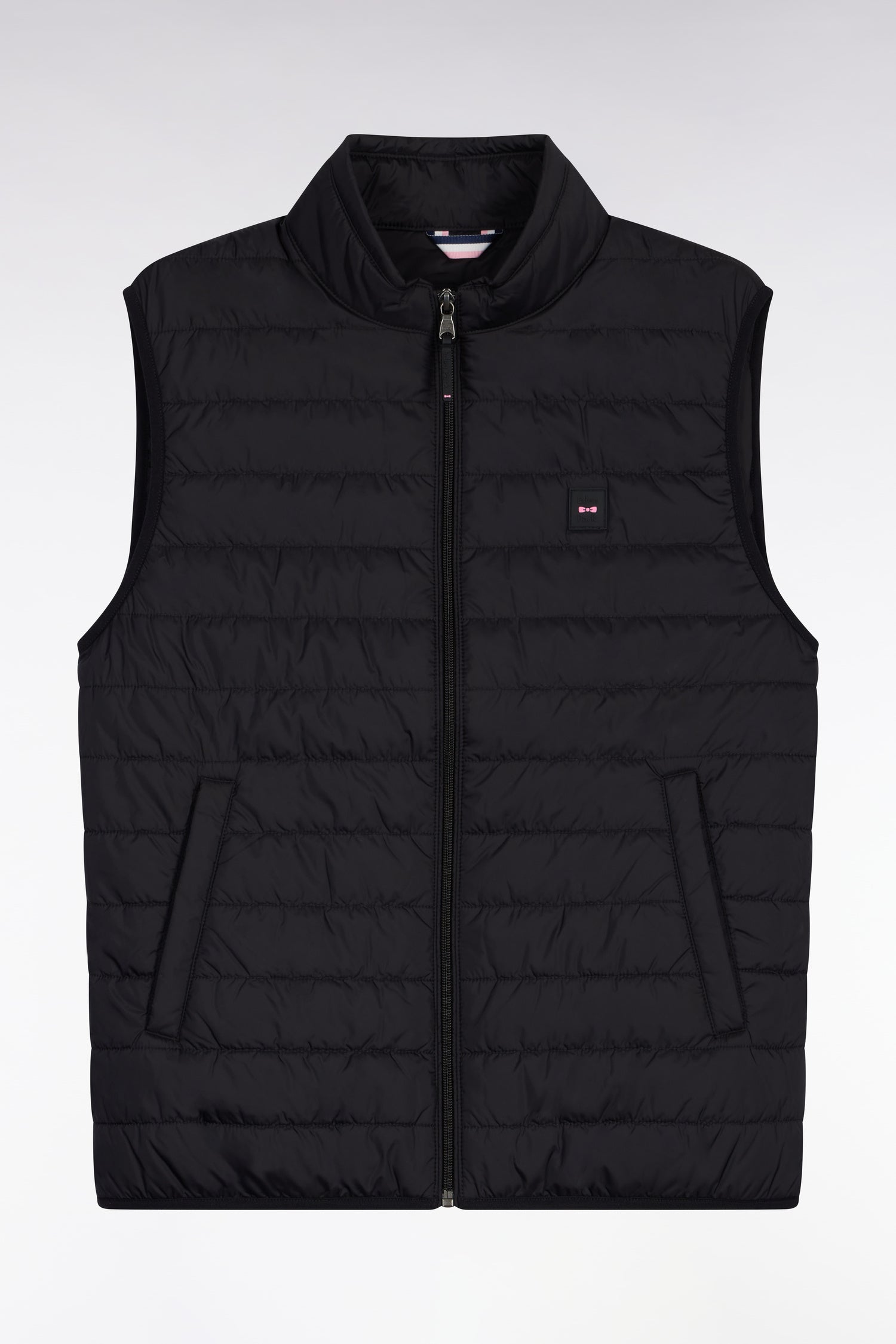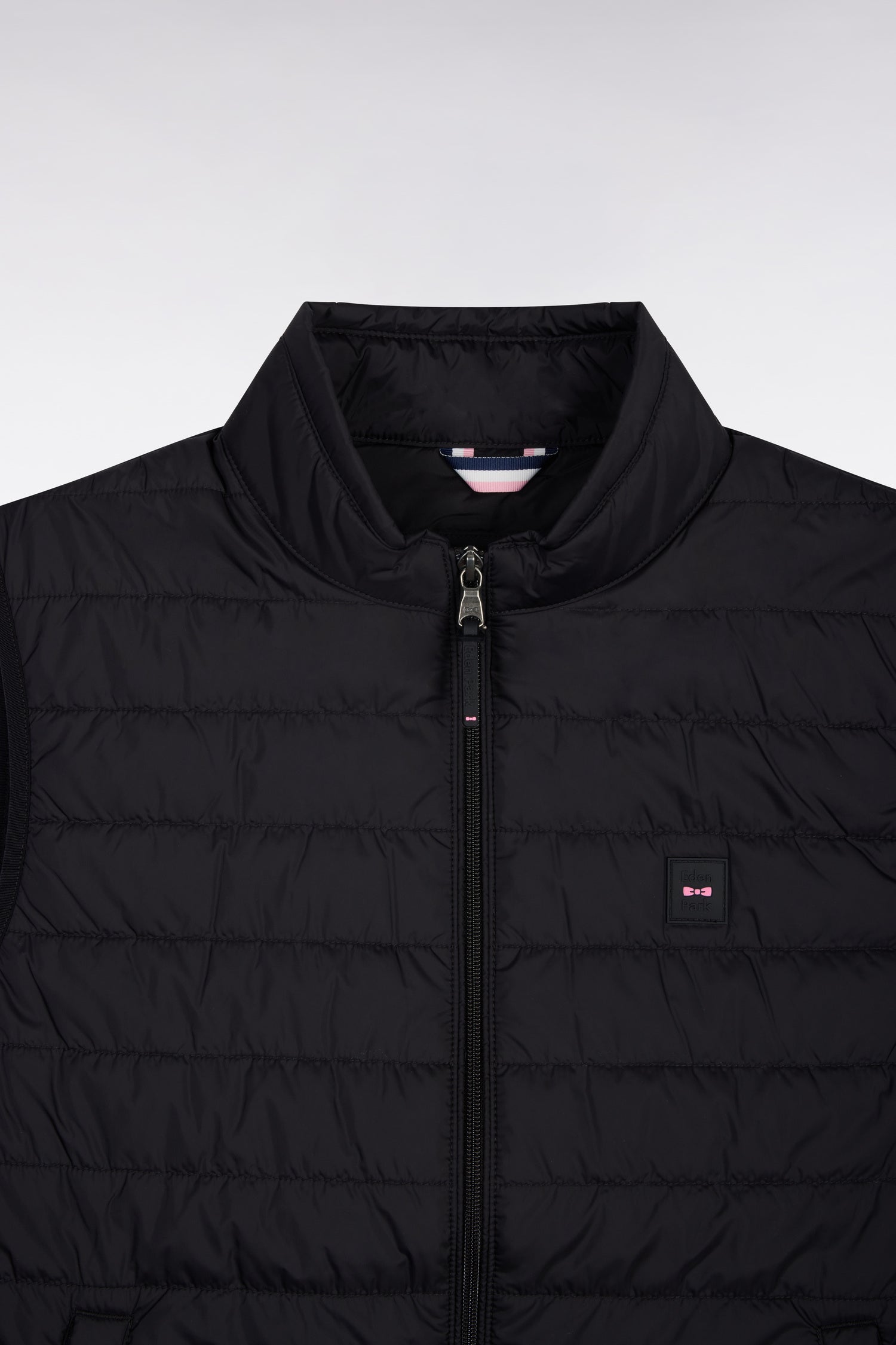 This sleeveless, water-repellent puffa features 2 piped front pockets, 2 interior pockets with Velcro and zip fastening. The filling is made entirely out of polyester fibres derived from recycled plastic bottles