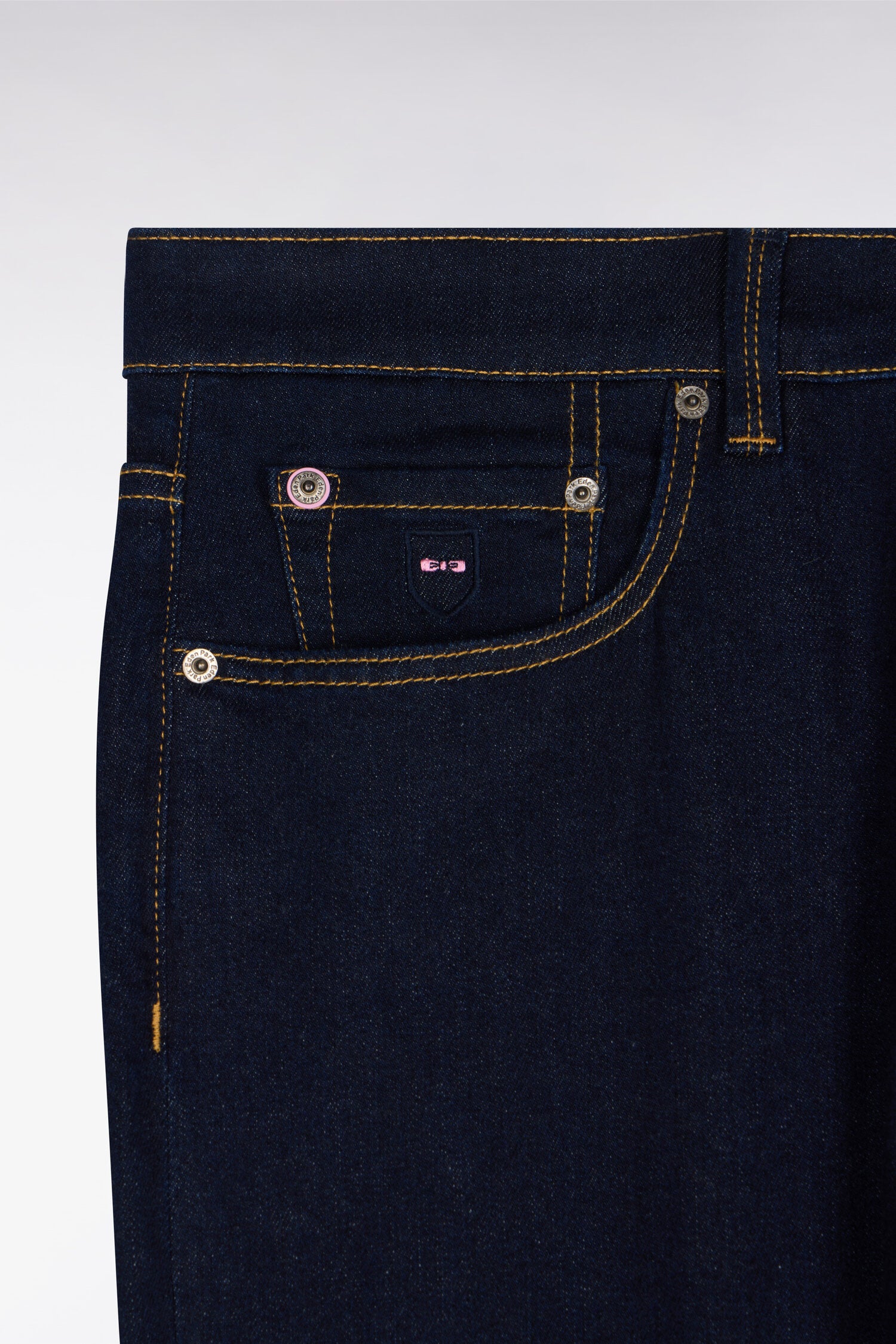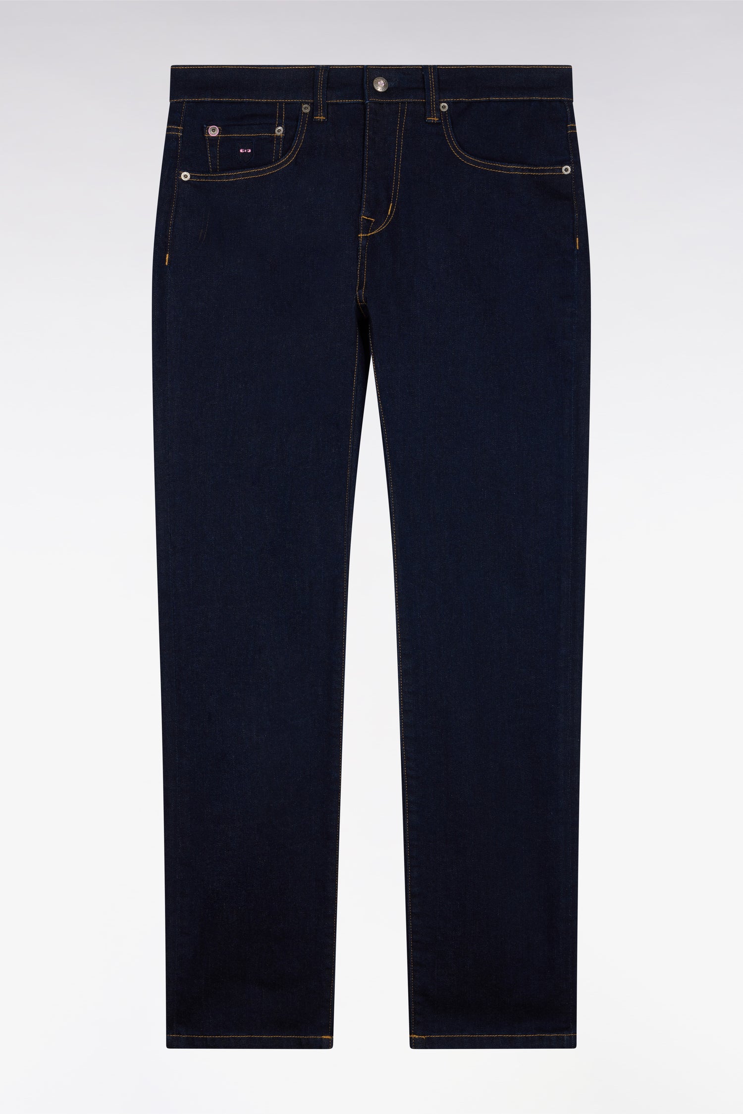 Indémodable, ce jean 5 poches en denim stretch bleu brut one wash à la coupe slim seyante combine style et confort. Une pièce polyvalente aux finitions soignées essentielle pour un vestiaire masculin moderne. Ce modèle à l'élégance soignée s'accorde aisément au vestiaire imaginé pour l'homme par notre Maison cette saison.