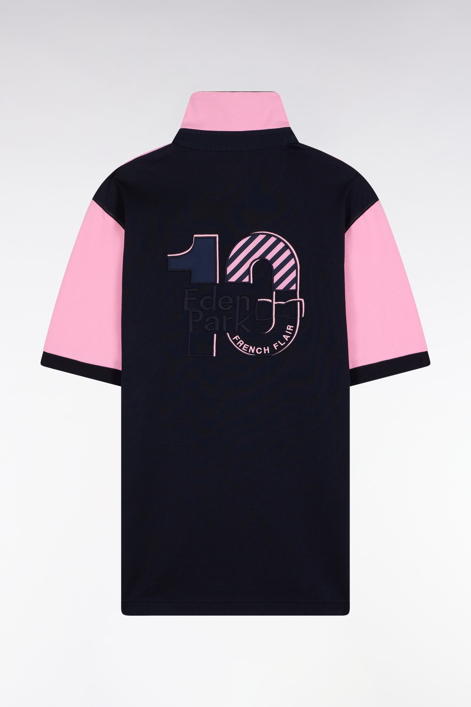 Boldly graphic, this cotton jersey rugby jersey plays on contrast with its two-tone design, alternating navy and pink panels, and large embroidery on the back. True to the Eden Park spirit, this men's urban jersey combines sporty inspiration with casual elegance, underlined by its meticulous finishing and embroidered emblem. Ideal for replacing polo shirts and T-shirts on a daily basis.
