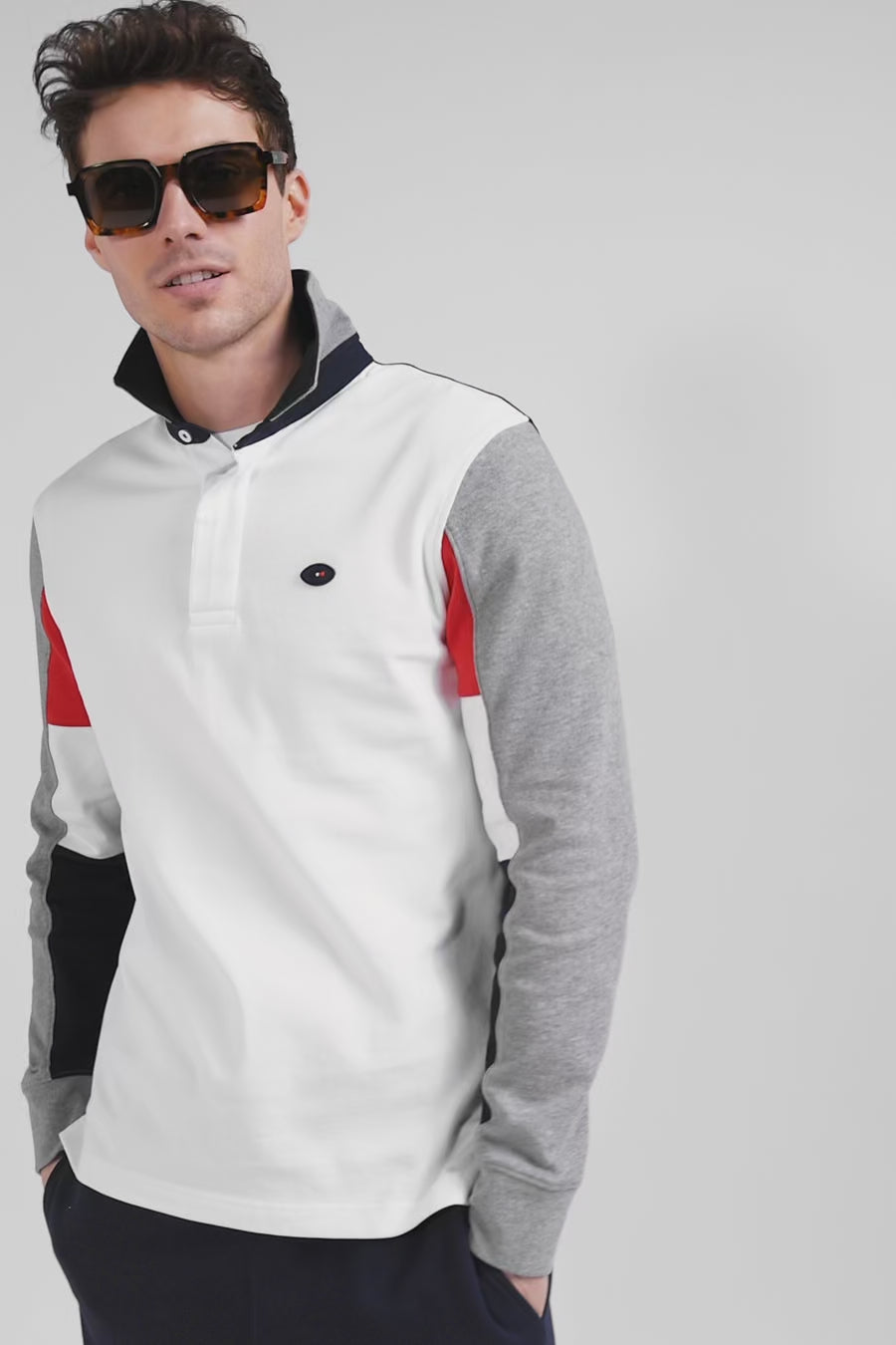 Celebrate the union of style and sport with our long-sleeved jersey in the colors of the XV de France. This unique design incorporates tricolor sleeve cut-outs, a gum badge, and back embroidery adorned with a tie fabric applique, fusing the icons of the XV de France with Eden Park emblems. An elegant tribute to the spirit of French rugby, this jersey is a collector's item for rugby fans and sport-chic menswear enthusiasts alike.