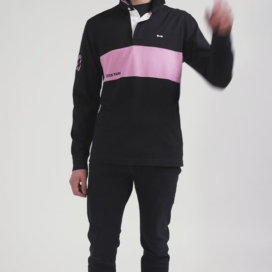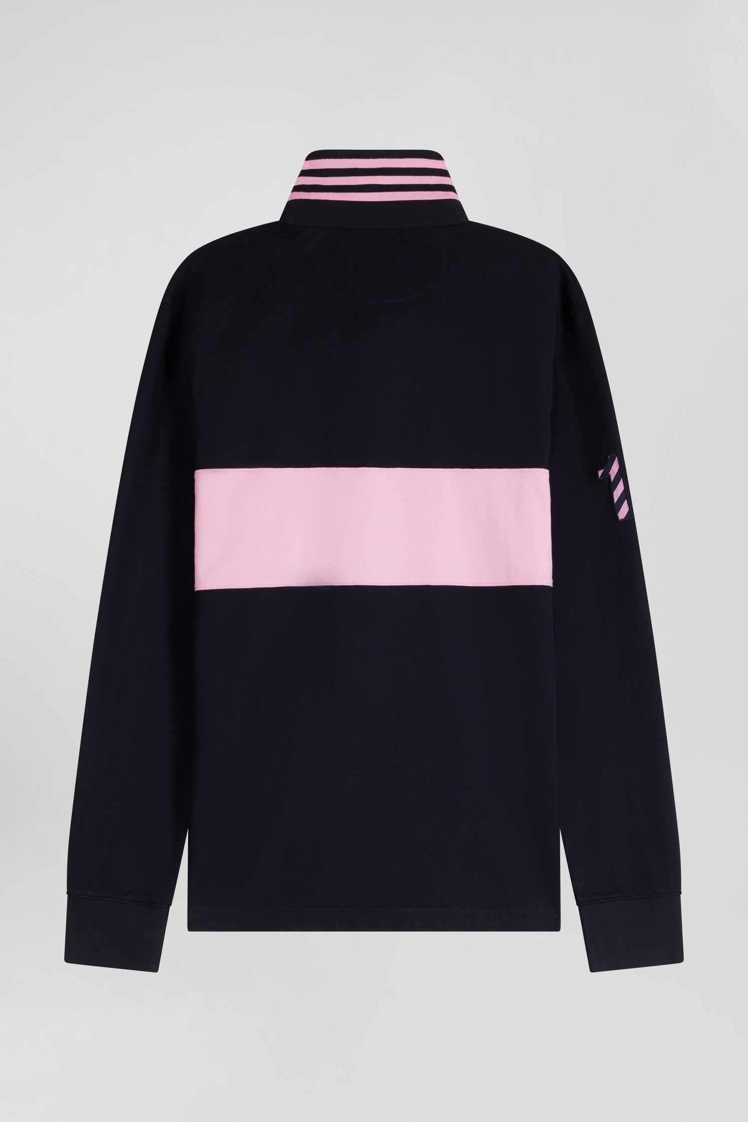 Regular long-sleeved cotton rugby shirt with navy and pink stripes