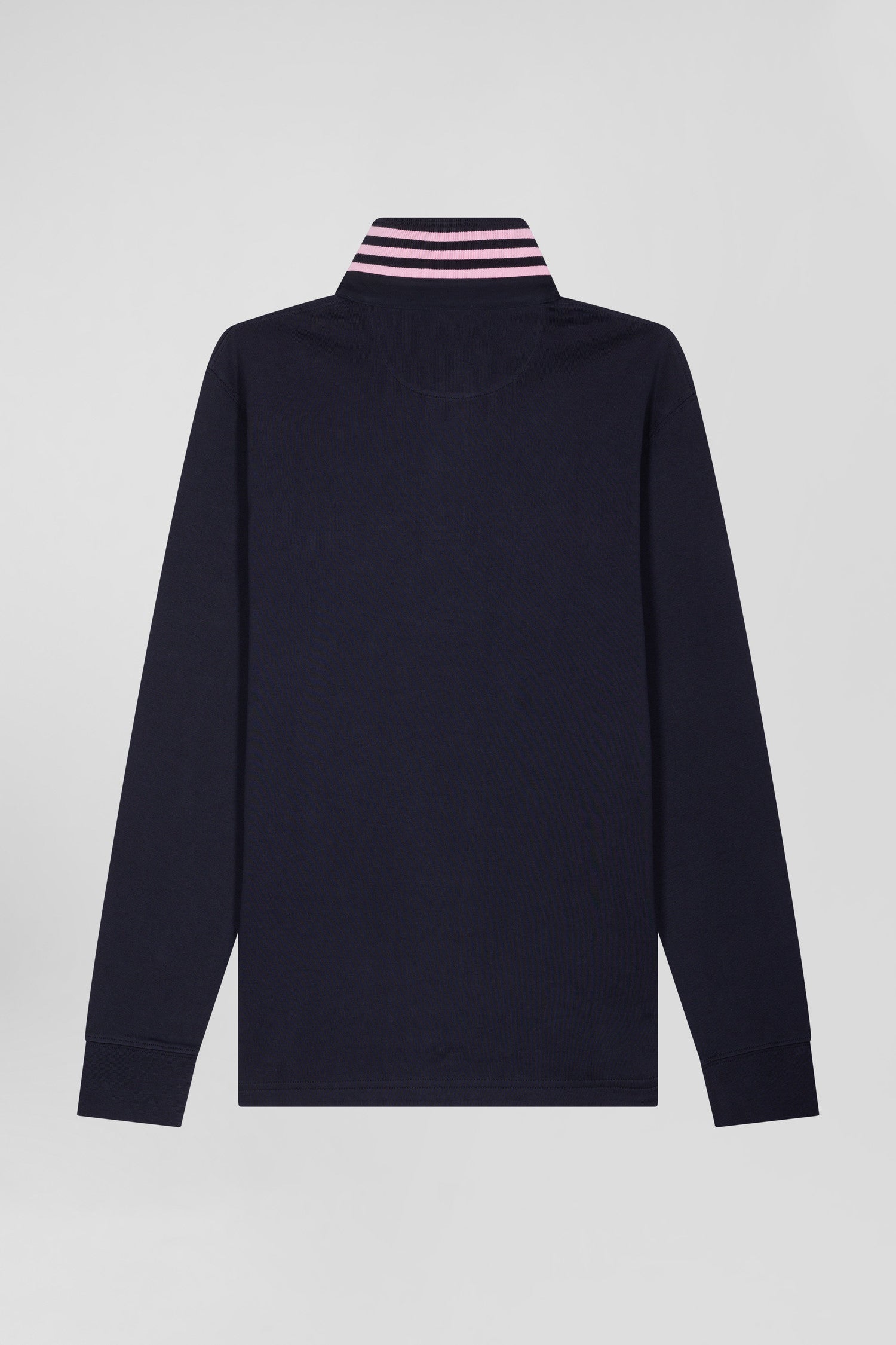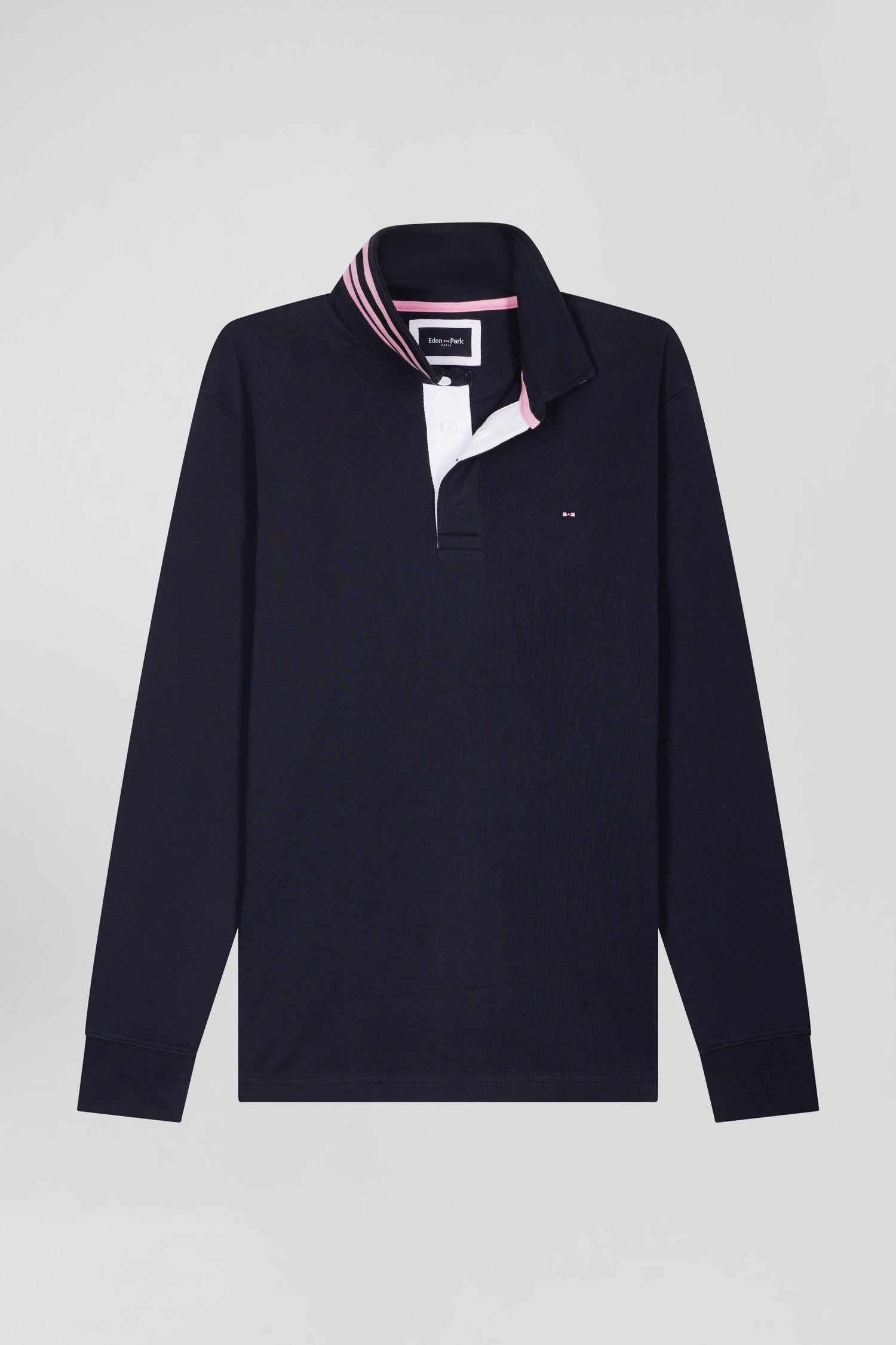 With its pink and navy hooped collar, polo neck and bow tie embroidery featuring our House emblem, this men's long-sleeved jersey is an iconic piece. Comfortable, this plain jersey with its hooped finish benefits from all Eden Park know-how. For added comfort and durability, this men's jersey, available in 4 sustained autumn-winter colors, is made from high-quality Pima cotton.