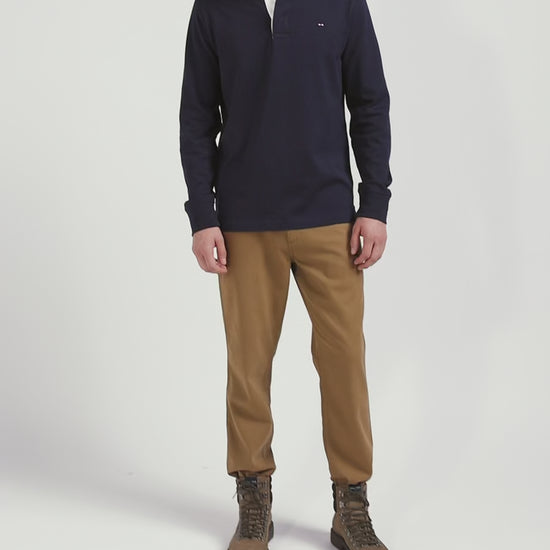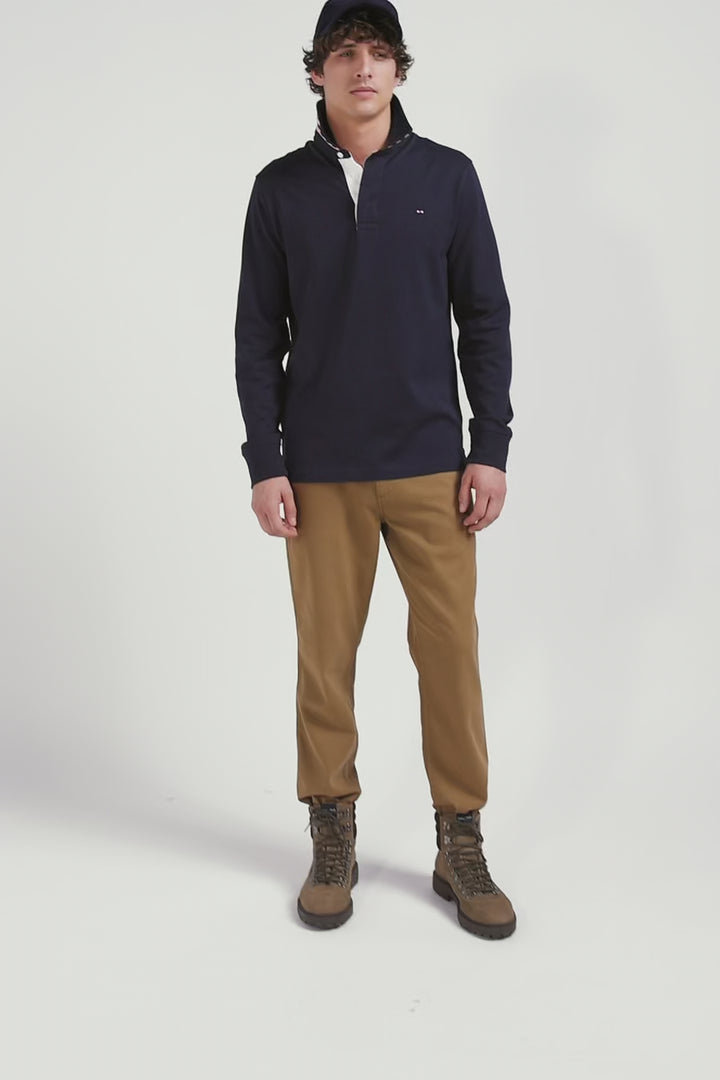 Regular navy blue long-sleeved Pima cotton rugby shirt