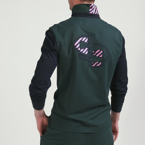 Regular green striped long-sleeved cotton rugby shirt with tie fabric patchwork