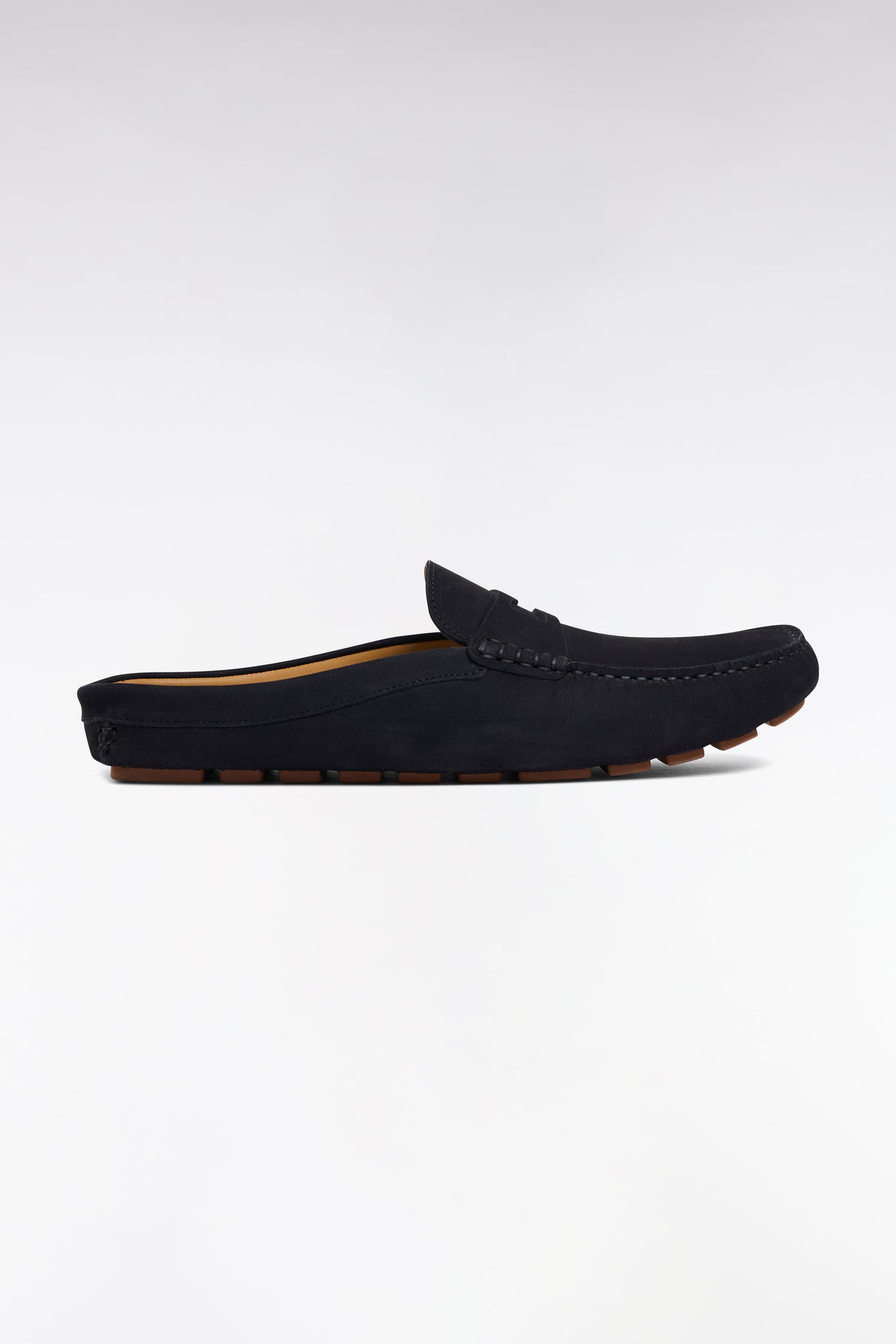These penny loafer moccasins in navy leather revisit a great classic in the modern man's wardrobe. Their clean line and smooth leather highlight a neat look, easy to combine with both a dressy outfit and a more casual ensemble. A timeless pair, designed to combine everyday comfort and style. Jeans and micro-patterned shirts or chinos and polo shirts go with the same ease.