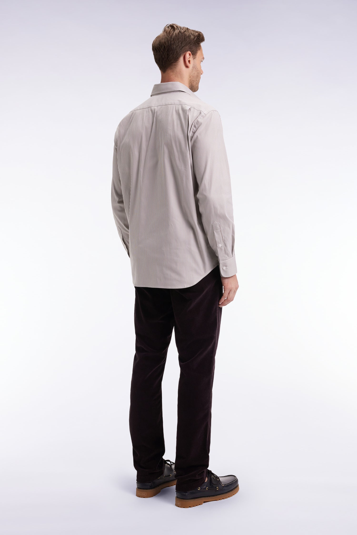 Rich texture and controlled comfort: this masculine velvet chino combines the classic allure of straight pants with the warm softness of stretch velvet. Its crease-free cut creates a clean silhouette, while its subtly ribbed velvet fabric gives it an assertive, easy-going style. Available in a range of seasonal colors, this corduroy chino goes equally well with knitwear
