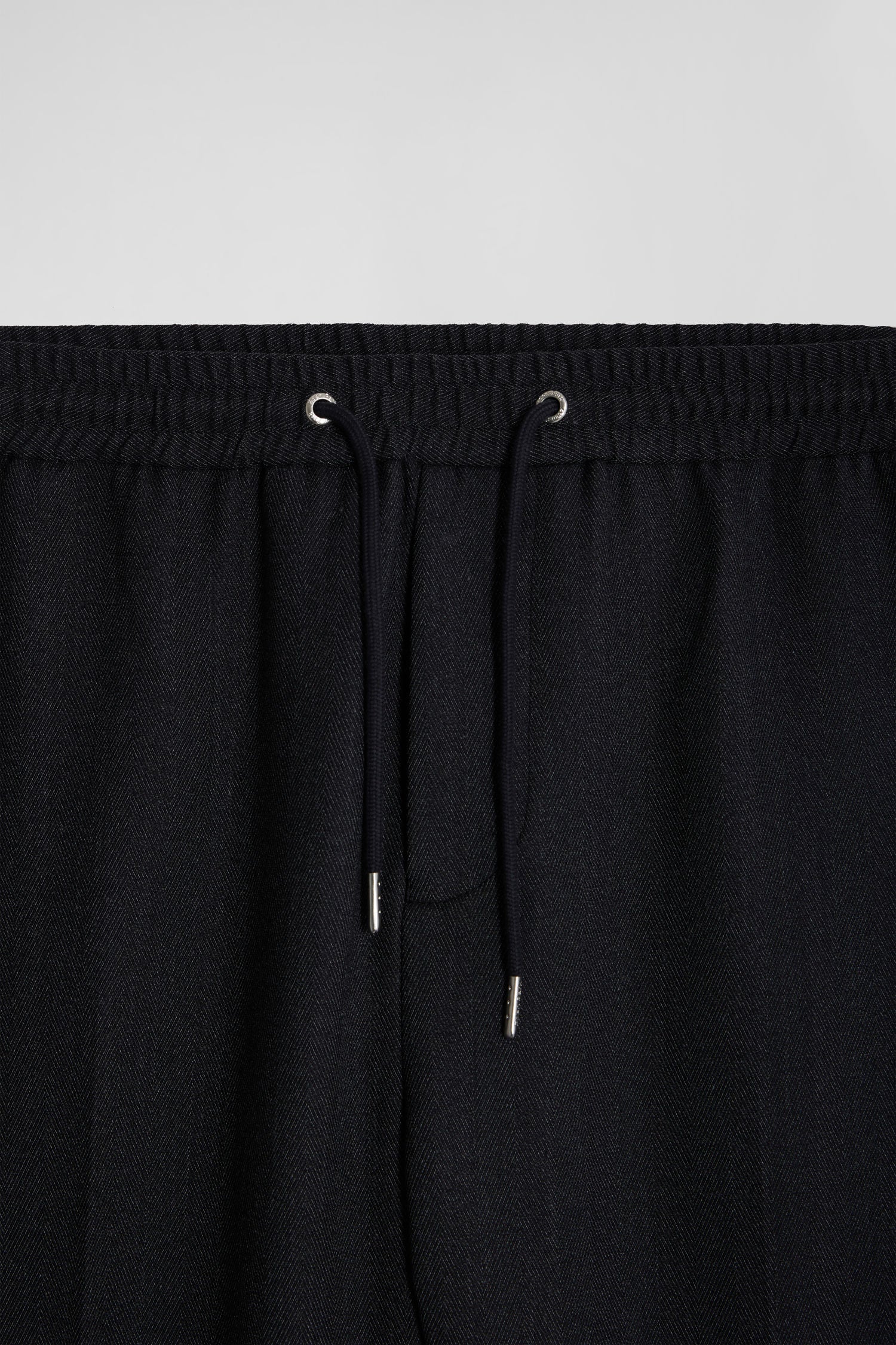 - Elasticated waistband and drawstrings with embossed tips