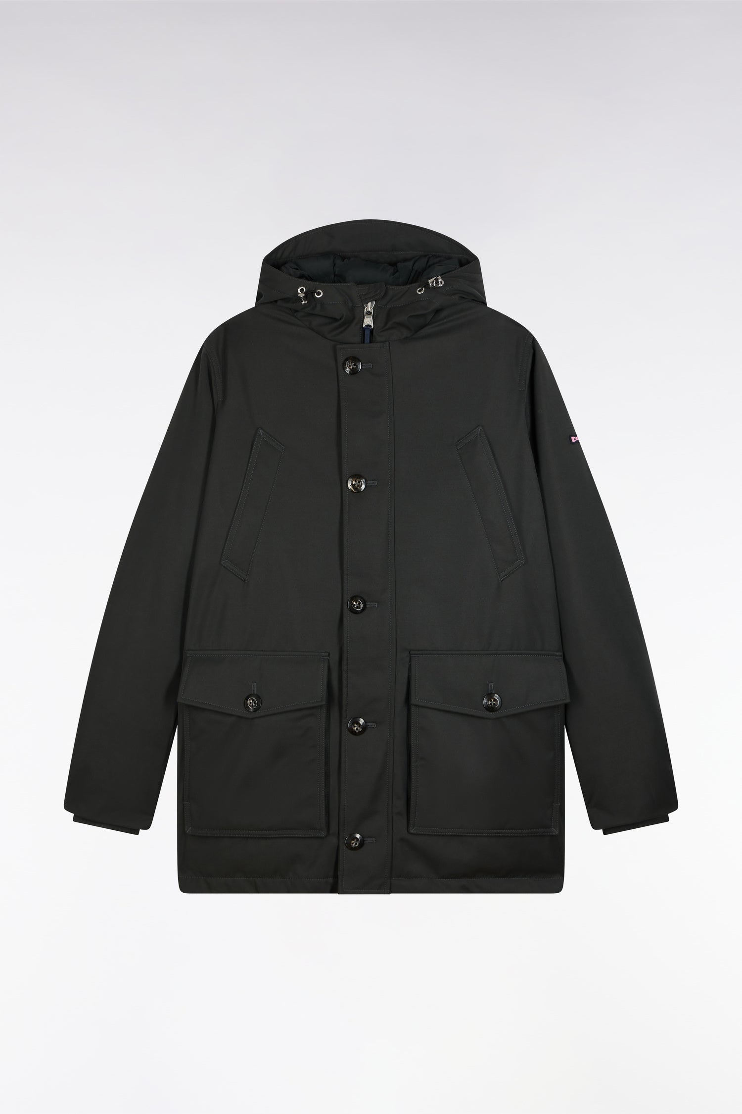 Designed by our teams to combine protection with sporty-chic elegance, this short nylon parka is available in khaki, navy or black. Featuring an integrated drawstring hood and quilted lining, it combines functionality and refinement. Multiple pockets - slit pockets on the chest, flap pockets and zipped inside pockets - add to its everyday practicality. A model with controlled volume for warm, comfortable wear.