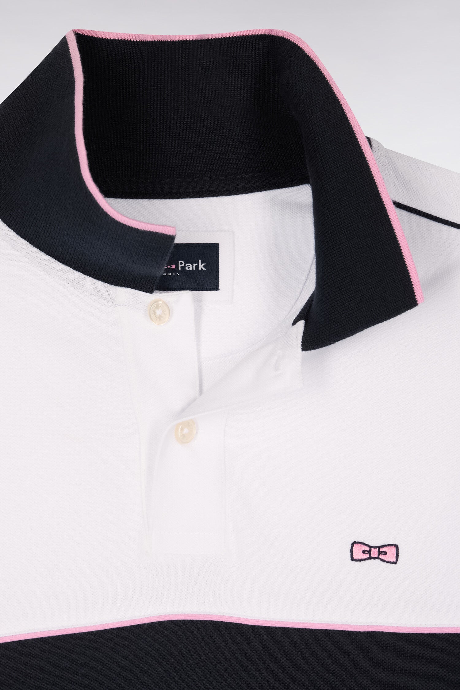 Polo à manches courtes en coton blanc découpes marine coupe regular