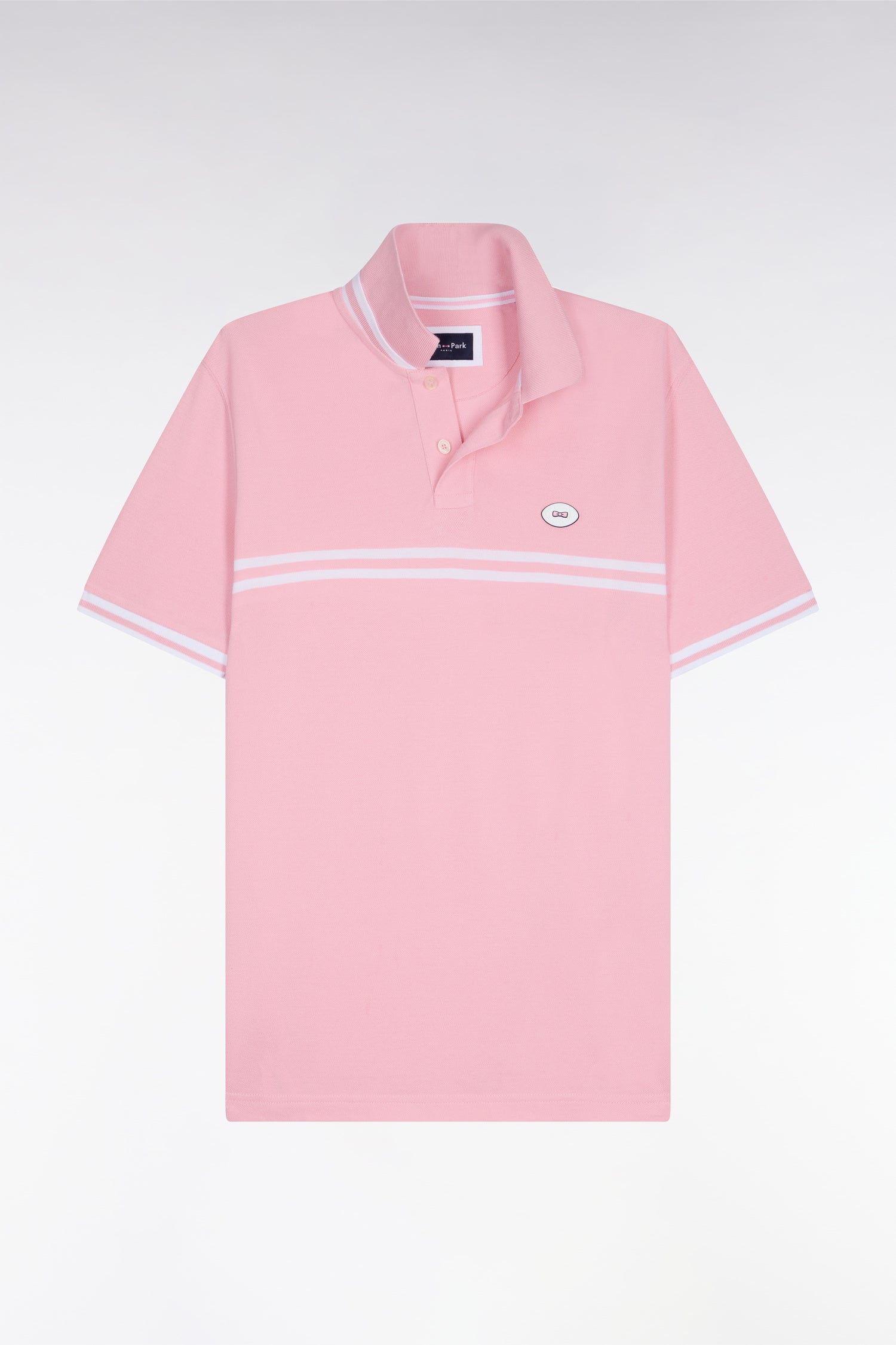 Polo à manches courtes en coton rose à rayures blanches coupe regular