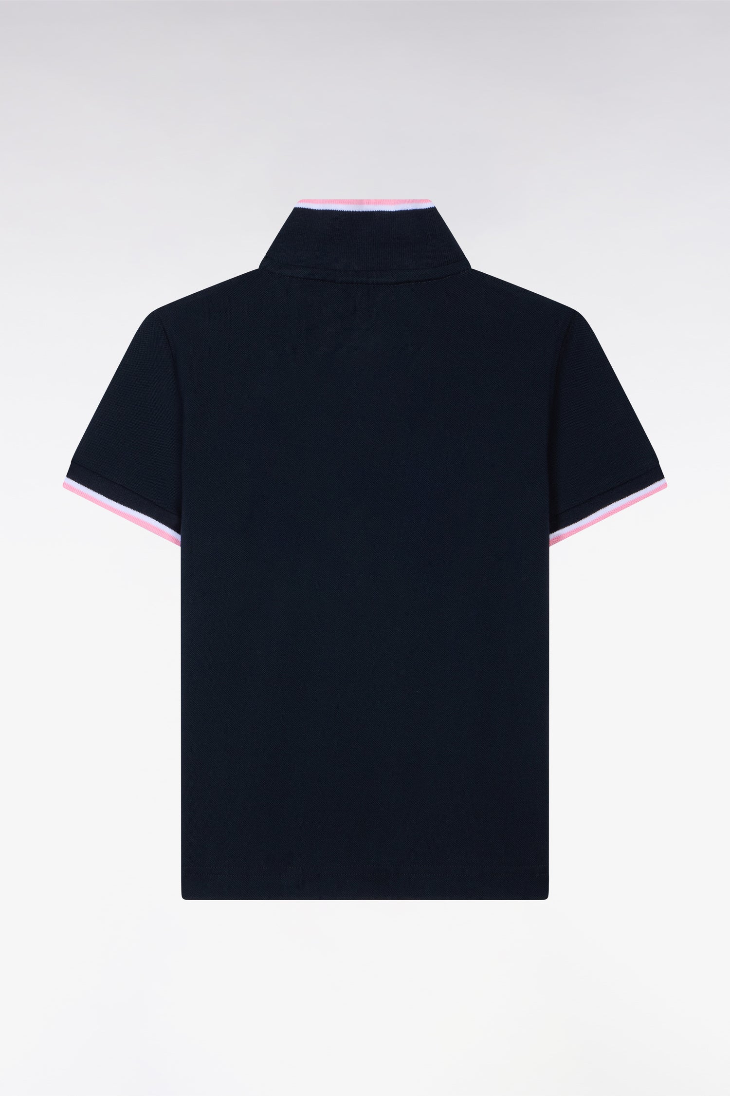 Ce polo à manches courtes en jersey de coton marine reprend les codes emblématiques du vestiaire Eden Park dans une version pensée pour les plus jeunes. Son col polo structuré, son nœud brodé poitrine et ses détails de bords-côtes tricolores lui donnent une allure sport chic. Confortable et facile à vivre, il accompagne les enfants dans toutes leurs aventures, de l’école au week-end.