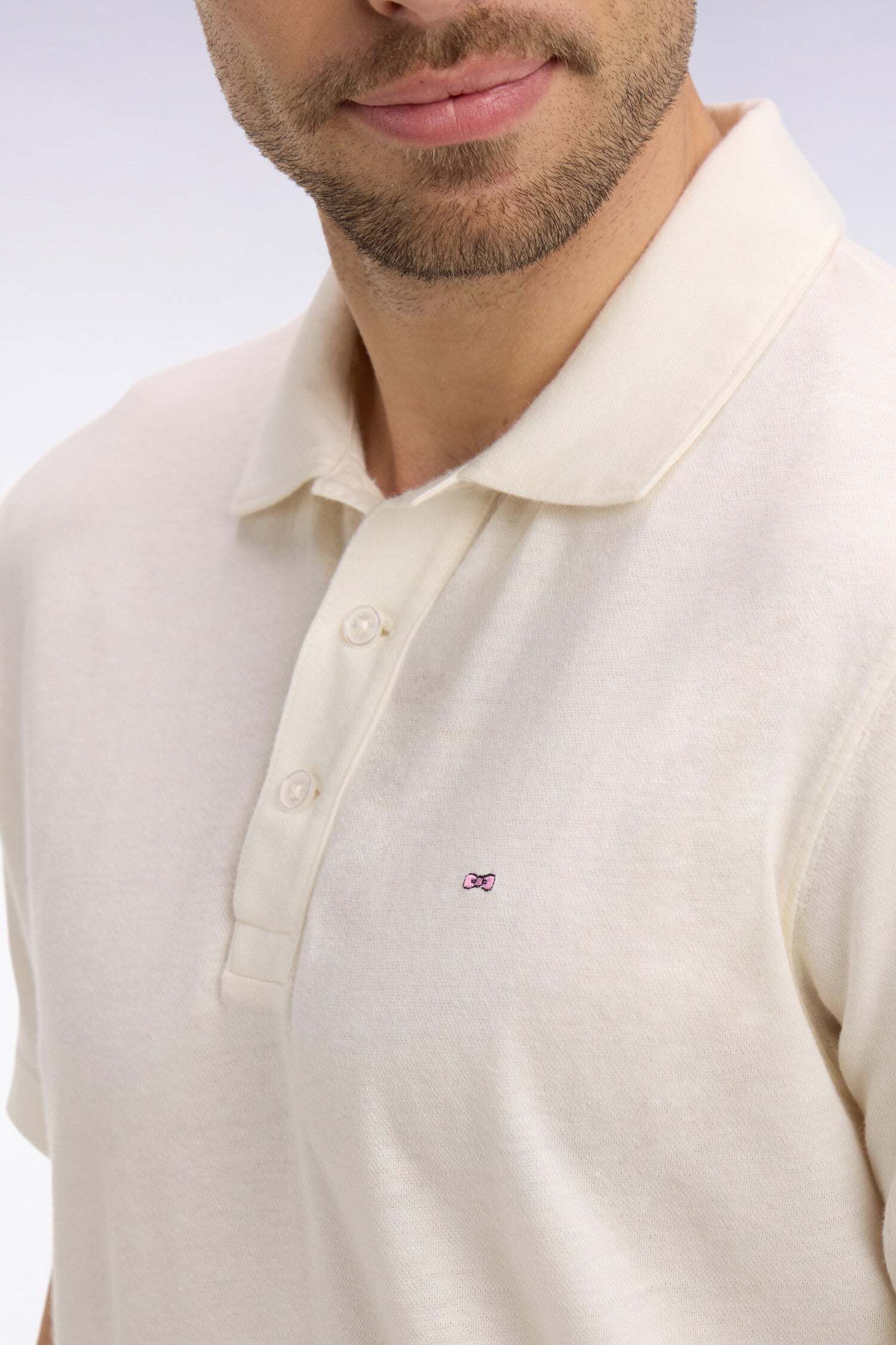 Polo à manches courtes en Oxford ivoire coupe regular