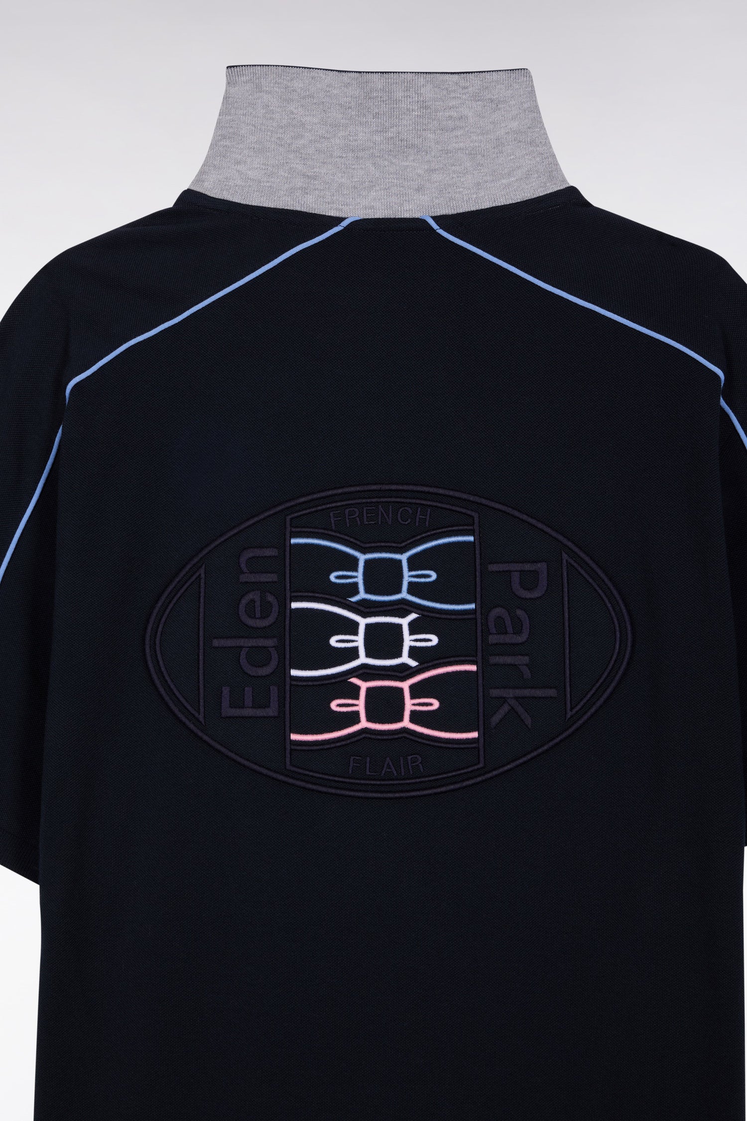 Made from soft cotton pique, this men's short-sleeved polo shirt features bow-tie embroidery on the back, a tricolor detail emblematic of the Eden Park wardrobe subtly echoed on its colored piping and silicone patch on the chest for an elegant, athletic touch.