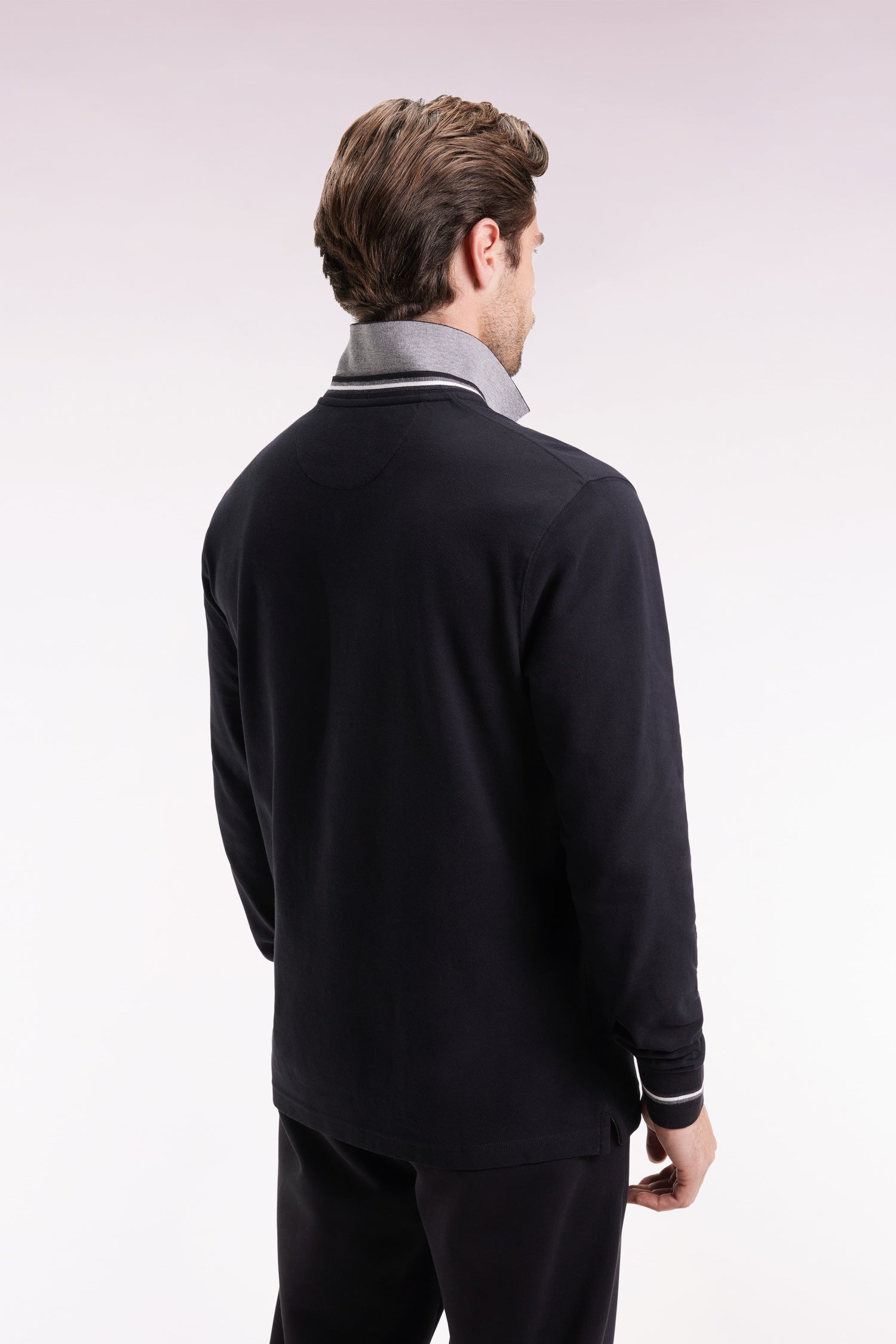 Relaxed fit long-sleeved polo shirt in black cotton