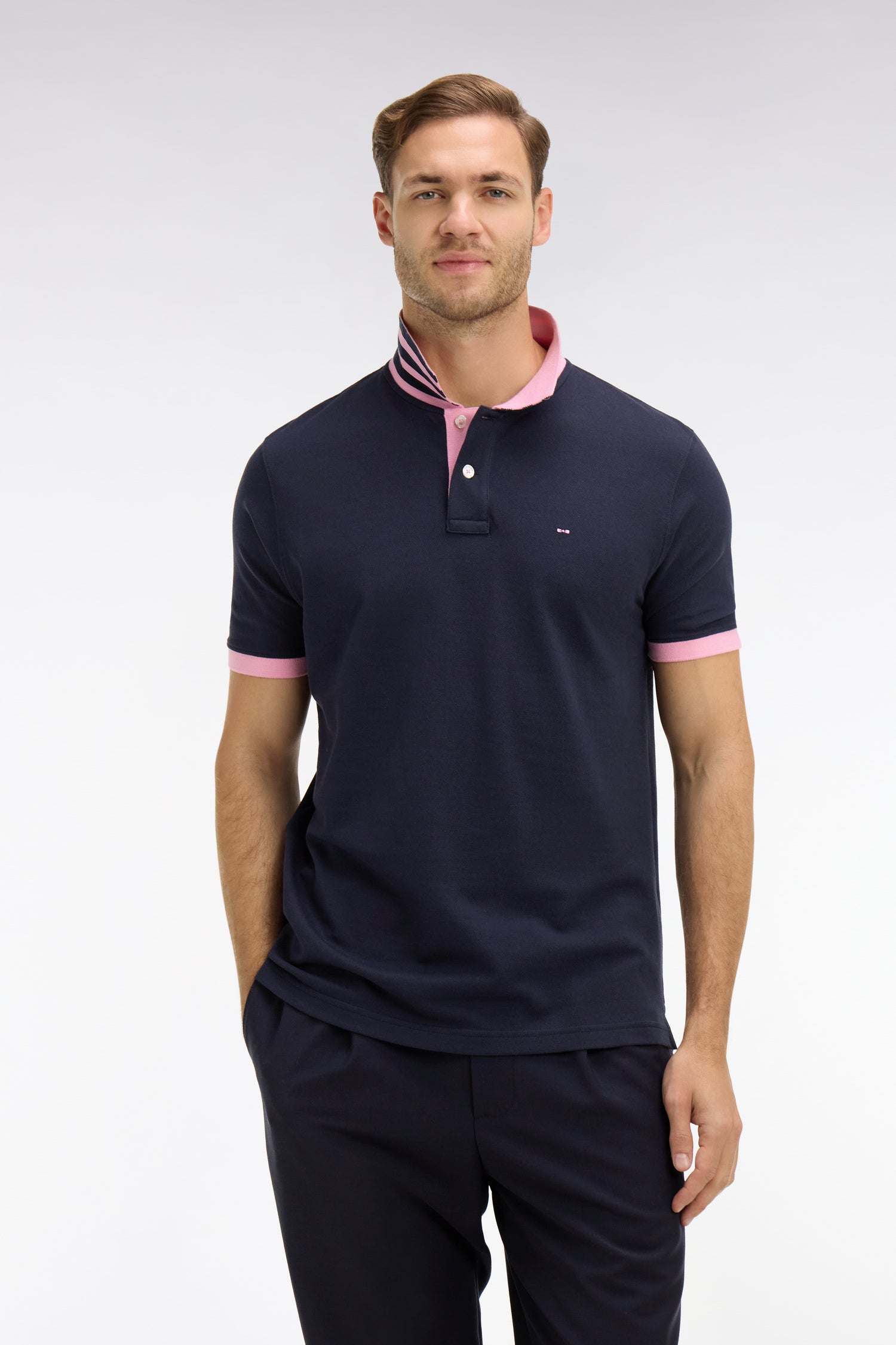 Don’t miss the perfect softness of pima cotton in the form of this short-sleeved signature Eden Park polo. The sporty design of this revisited essential is enlivened by contrasting ribbed finishes. Further boost its allure by raising the polo collar and revealing its striped underside.