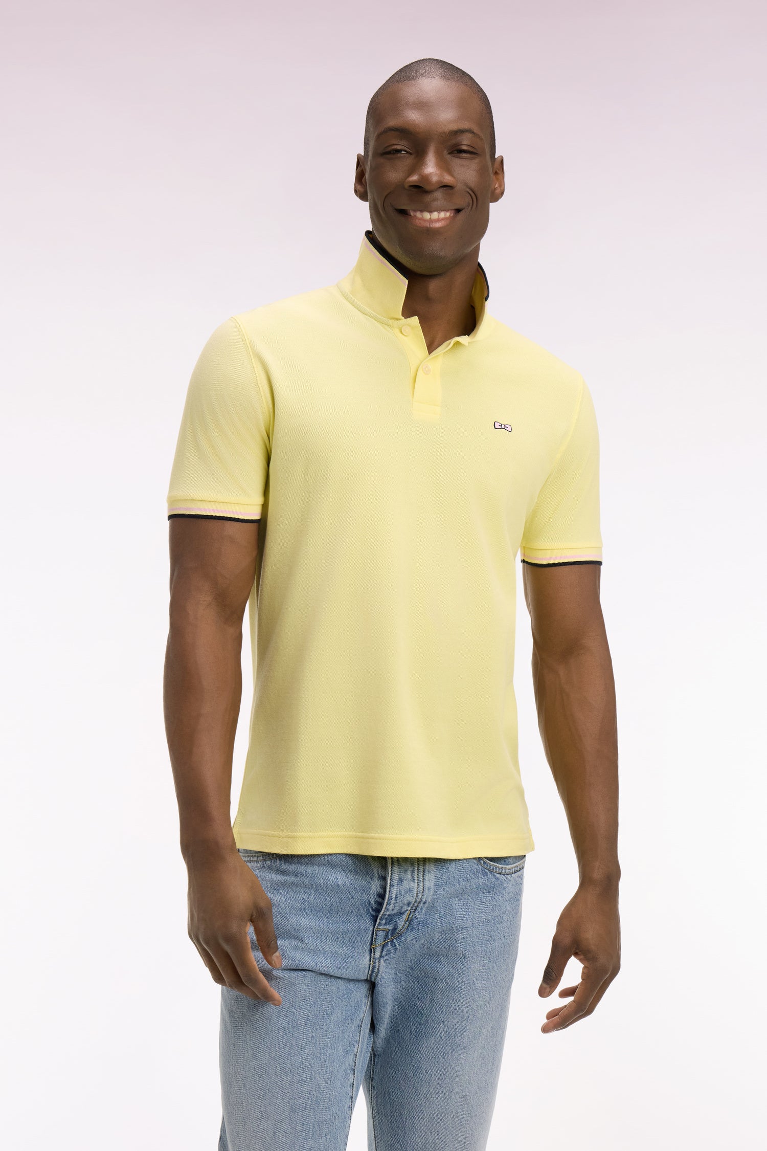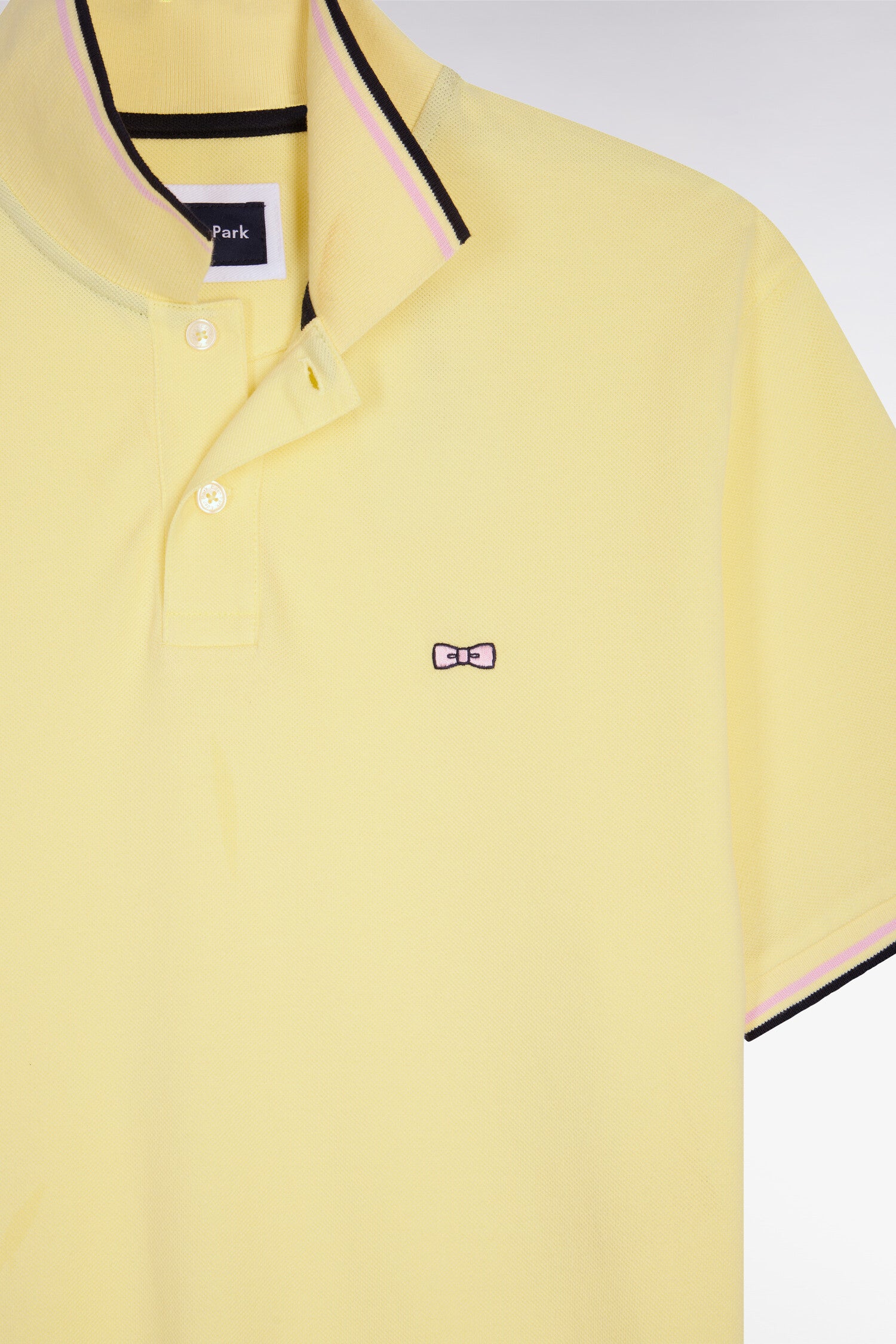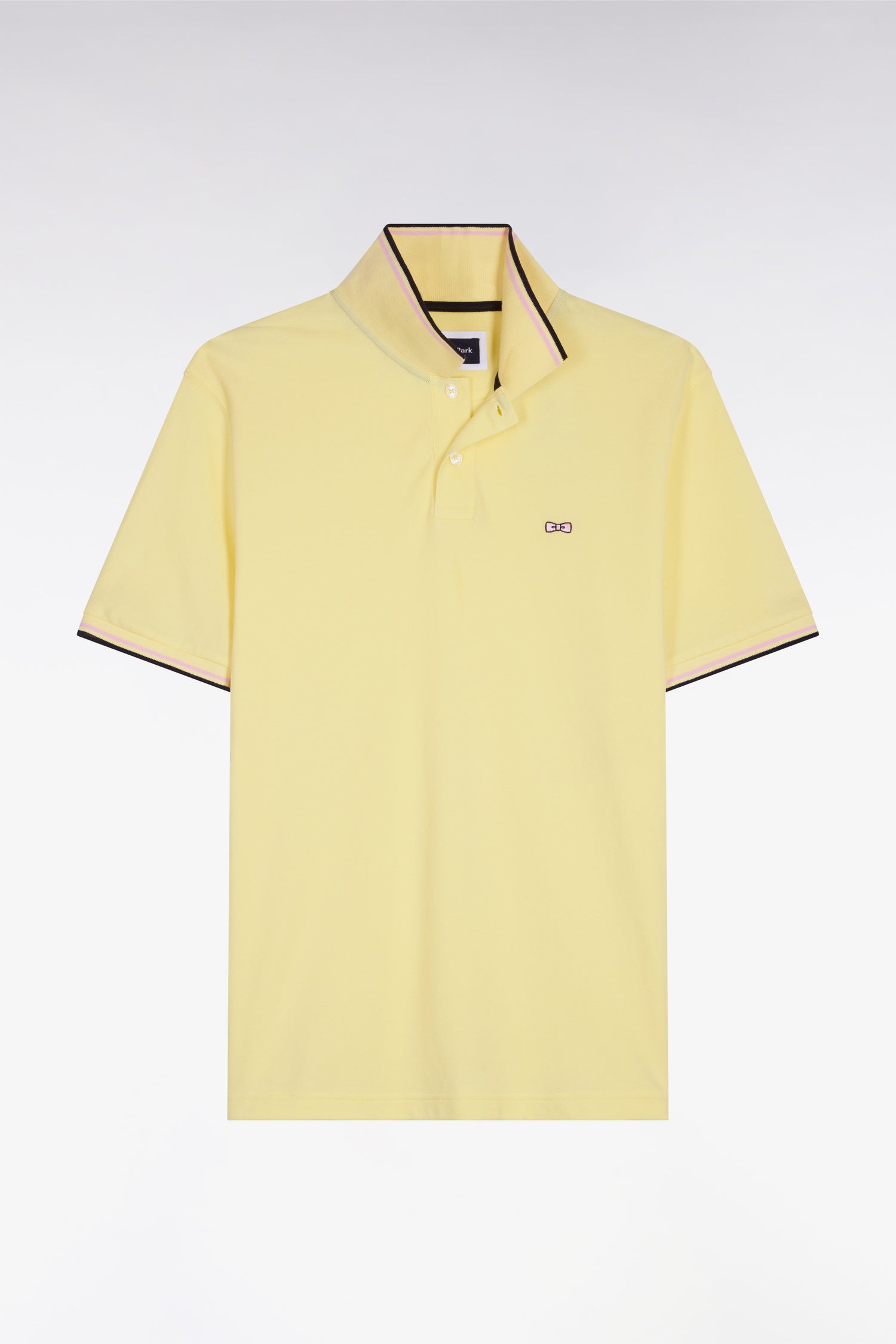 Polo manches courtes en coton jaune détails rayés coupe regular