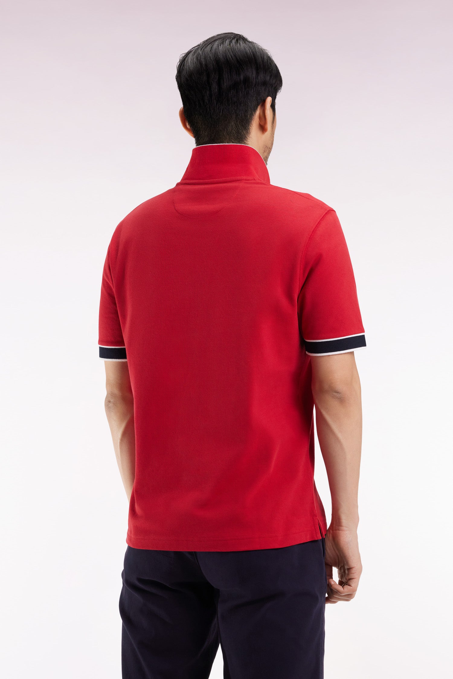 Red cotton short-sleeved polo shirt, loose fit