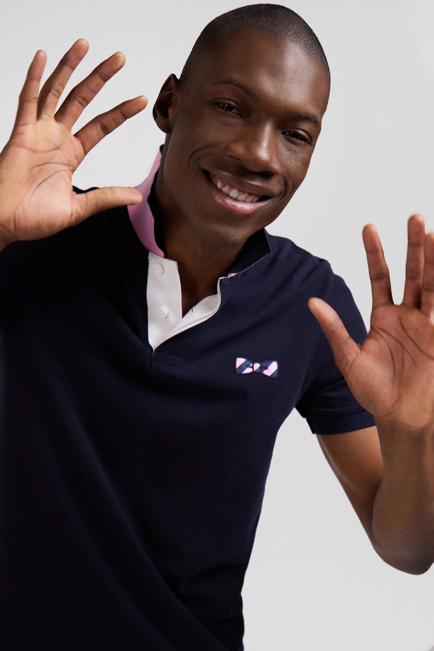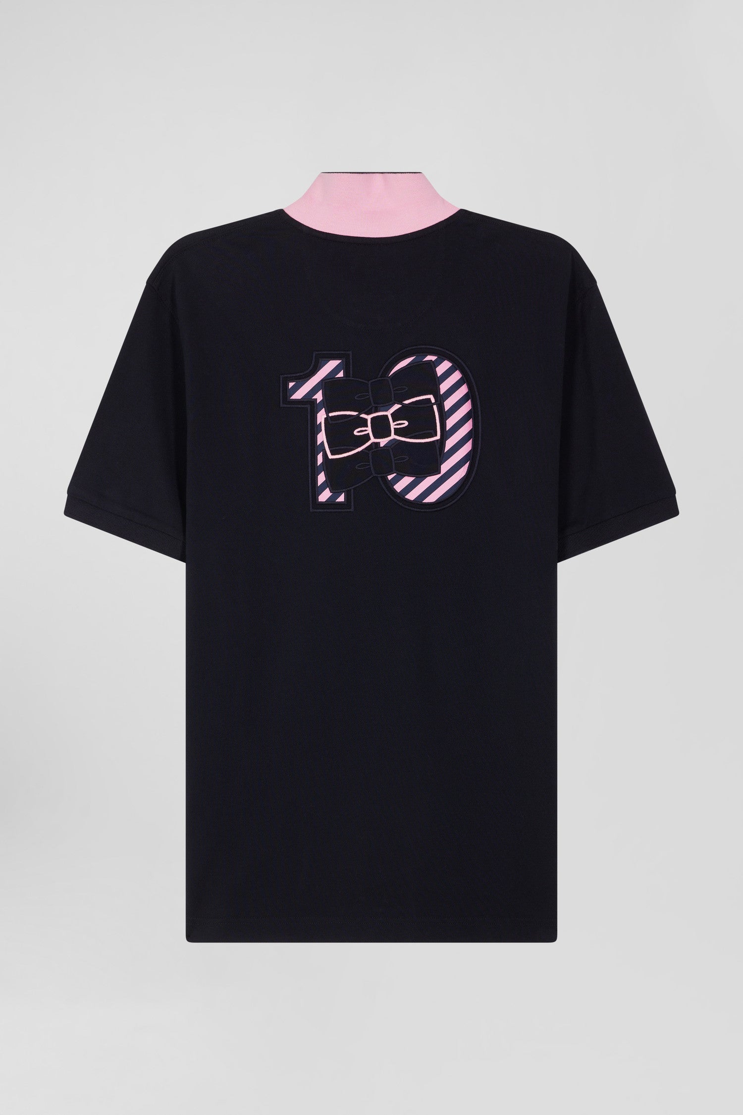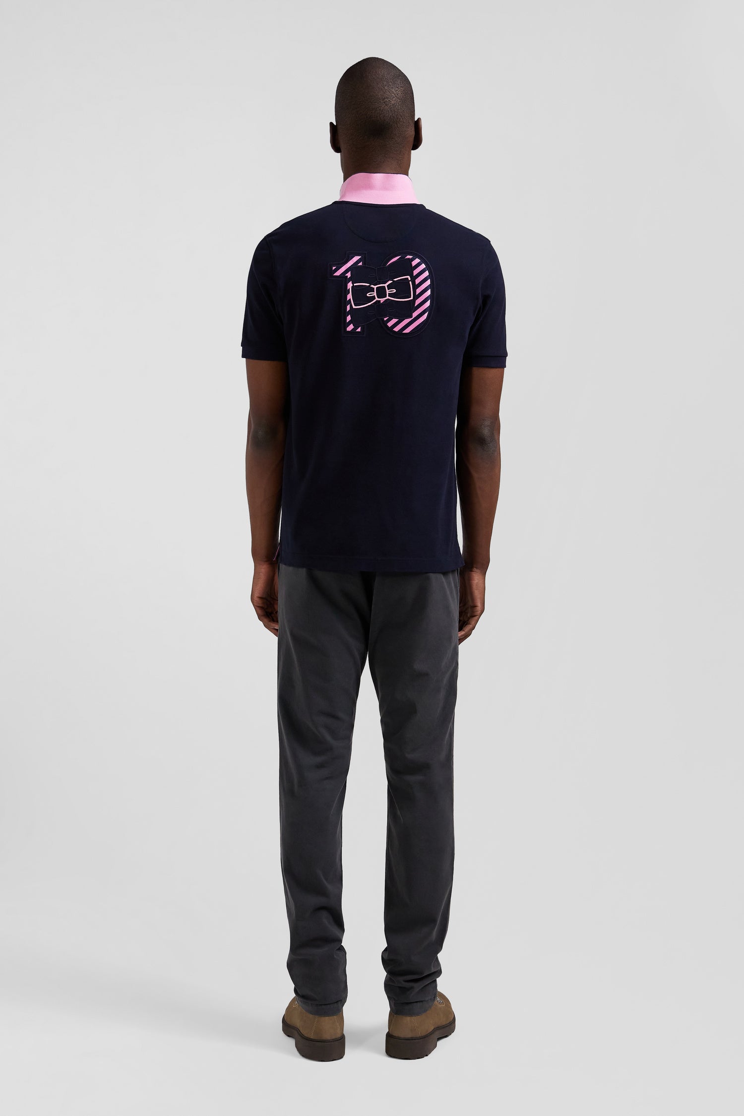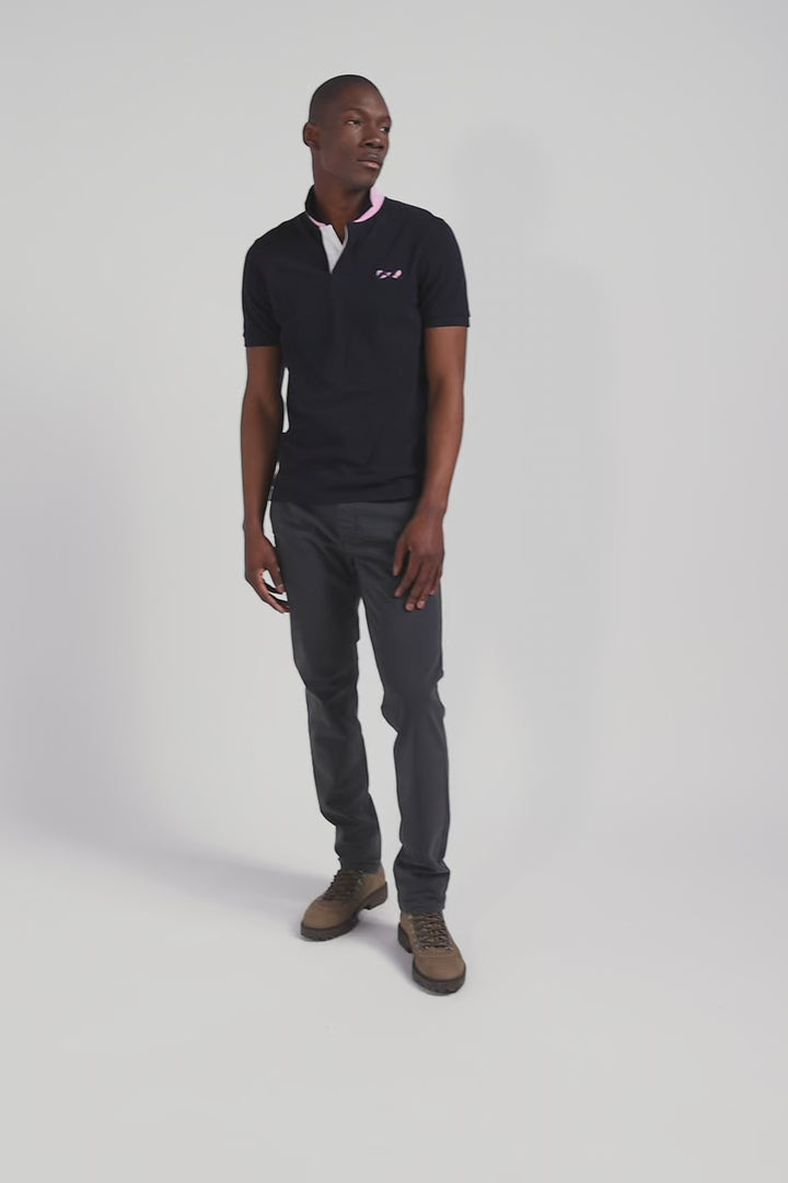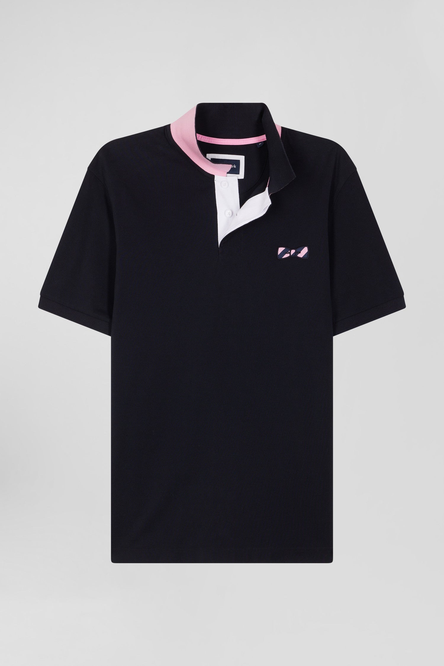 This men's cotton polo shirt is a refined, casual piece, perfect for everyday chic. Its straight Regular fit offers comfort and ease, while the distinctive chest embroidery and pink and navy hoop tie fabric appliqués add a touch of originality. Finishing details, such as the oval rugby buttons and plain lining, testify to our Maison's attention to every detail.