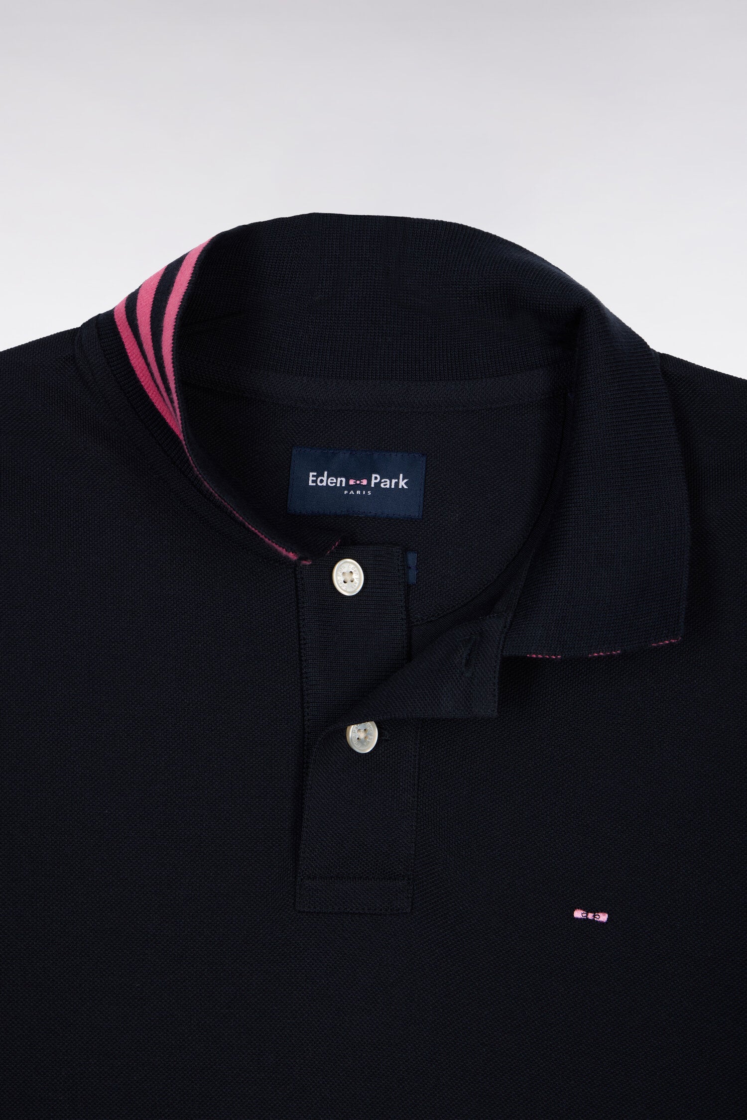 Polo manches courtes en piqué coton marine dessous de col rayé coupe slim