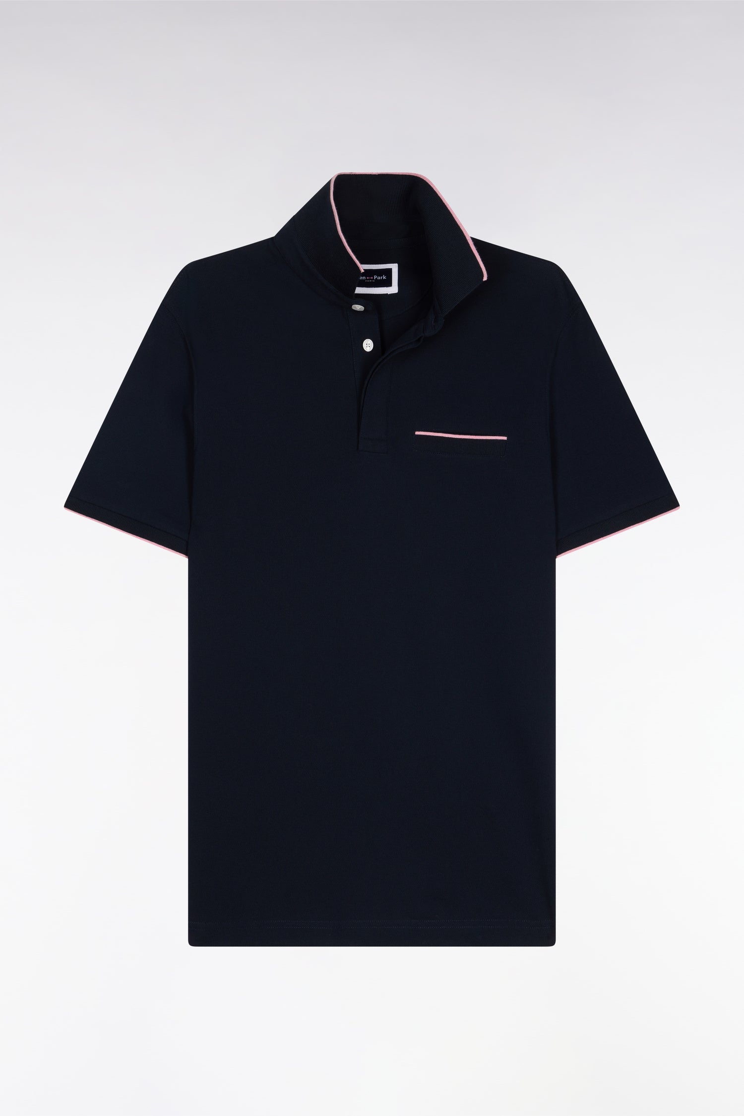 Polo manches courtes en piqué coton stretch marine coupe slim