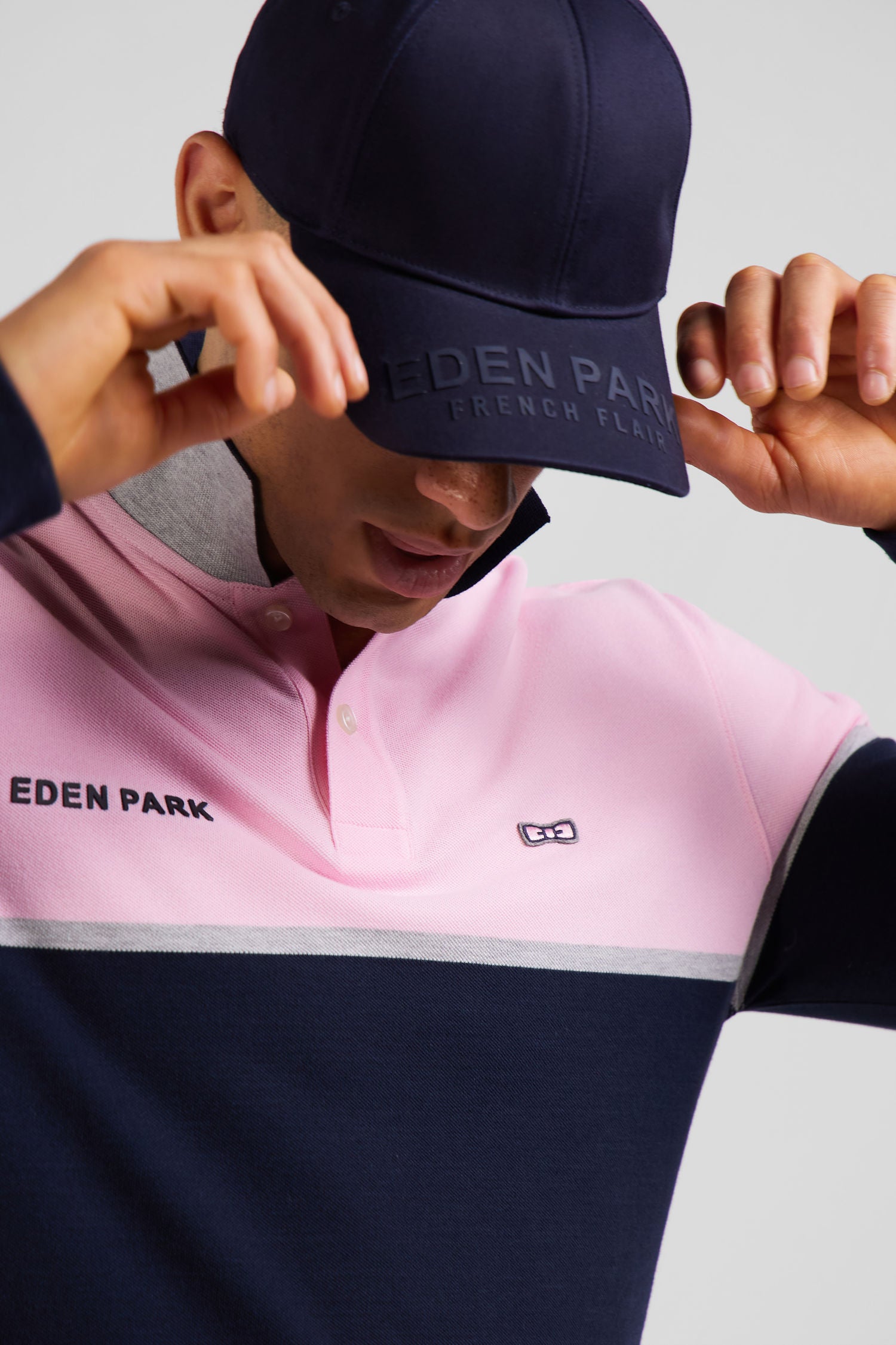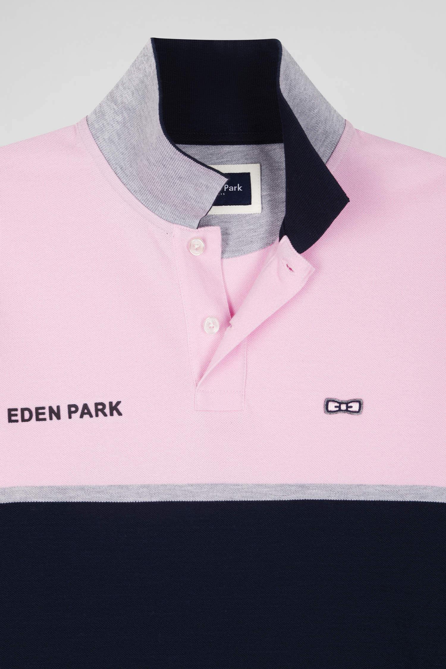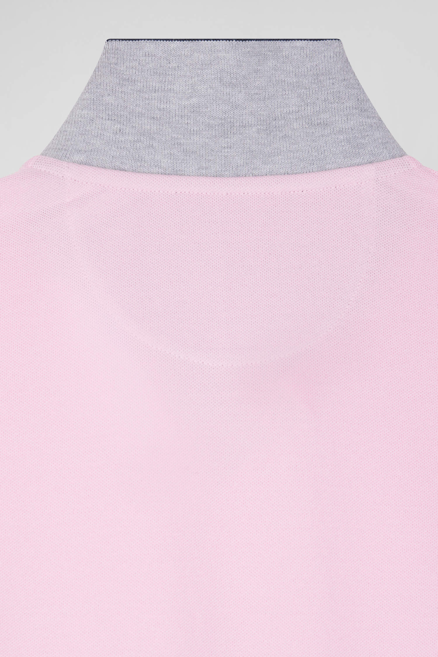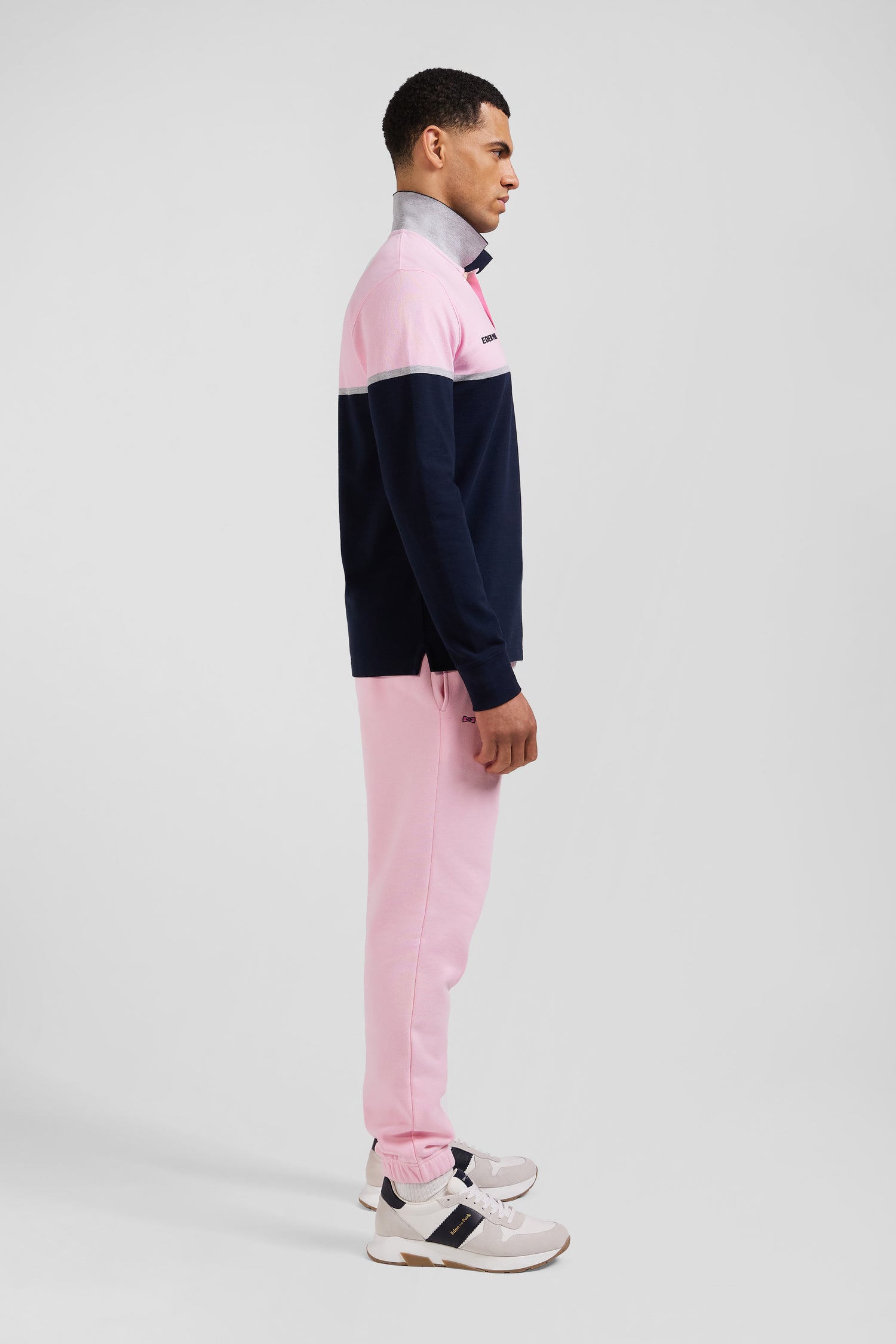 Regular navy blue bicolor long-sleeved cotton piqué polo shirt