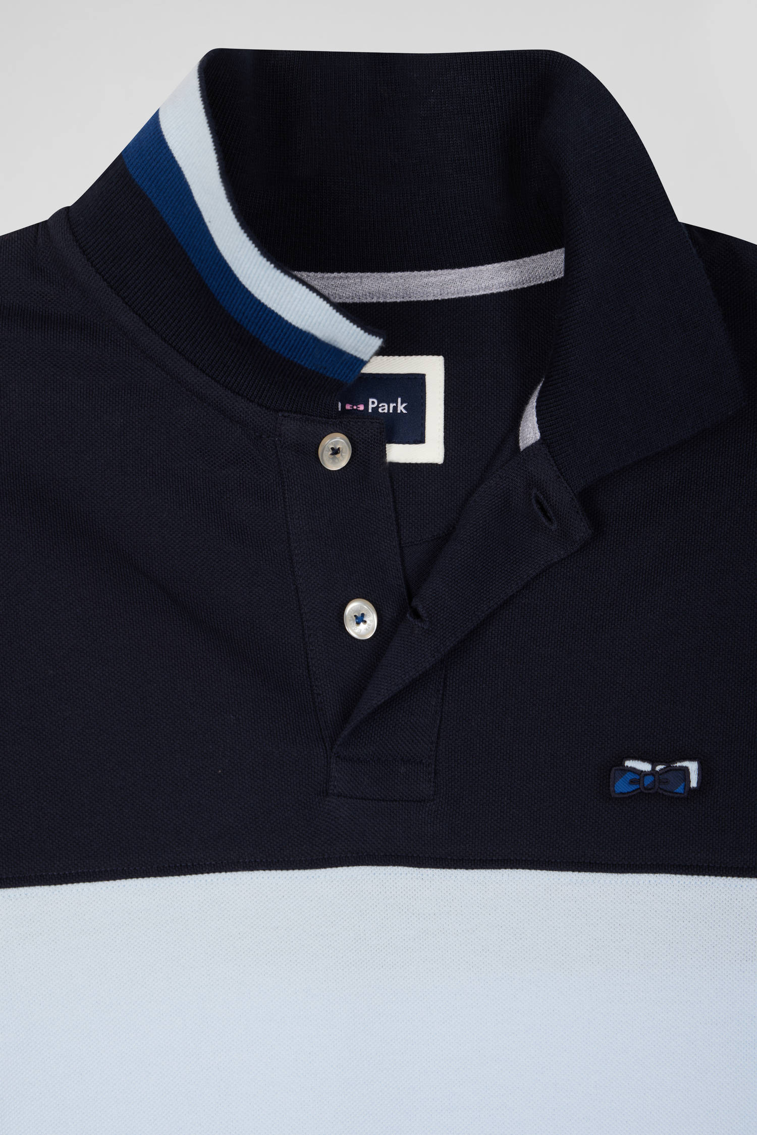 Regular sky blue long-sleeved cotton piqué polo shirt with sleeve embroidery